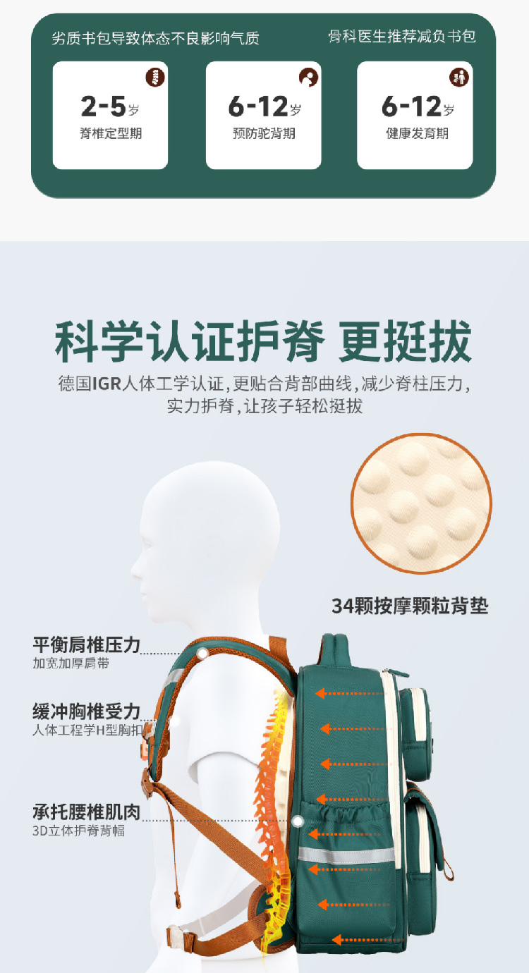 【开学季】儿童背包1-6年级减负多隔层云朵书包 男女小学生护脊书包