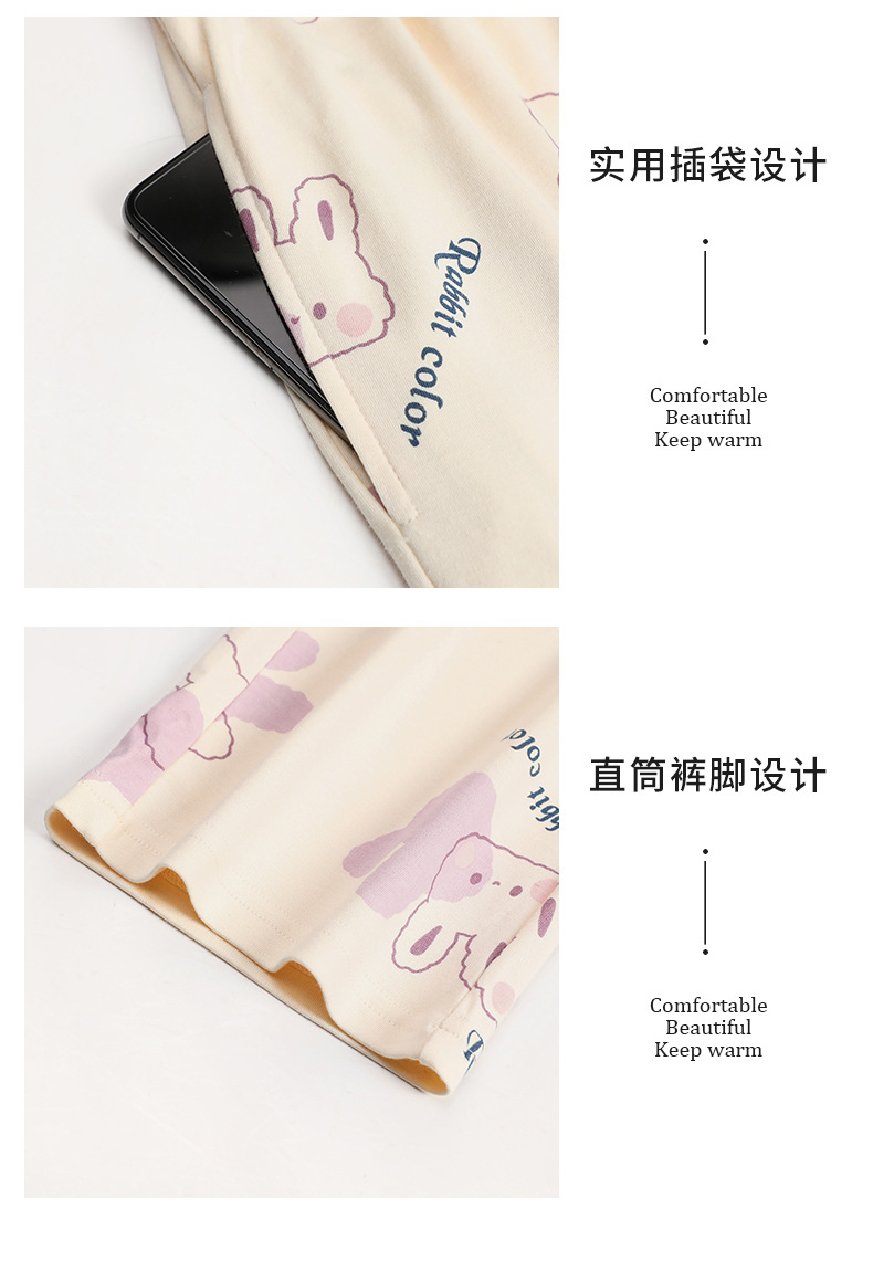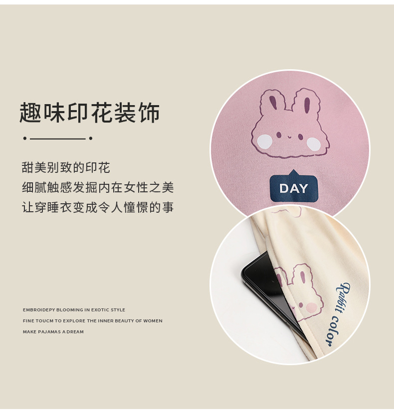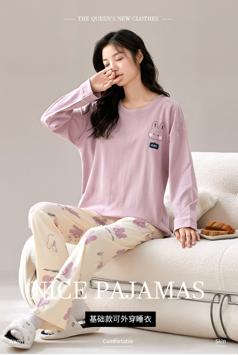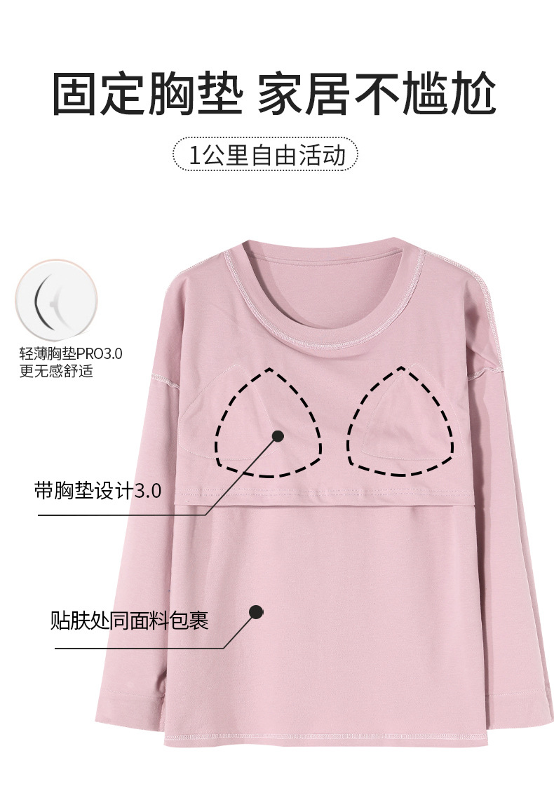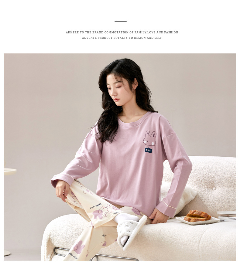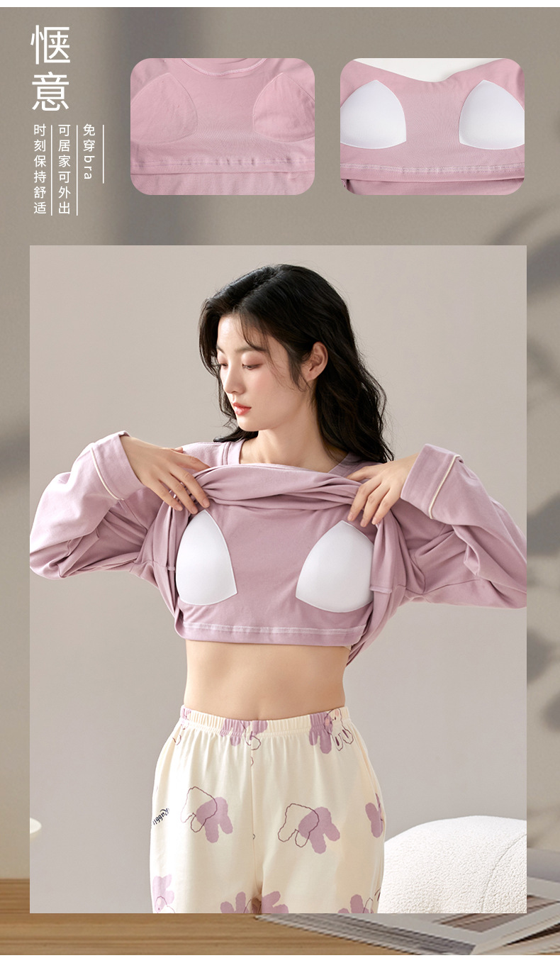 秋冬【卡通印花仿棉睡衣】带胸垫长袖长裤套装 可外穿大码休闲