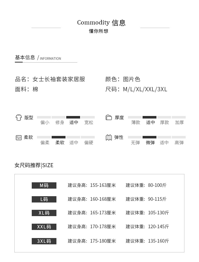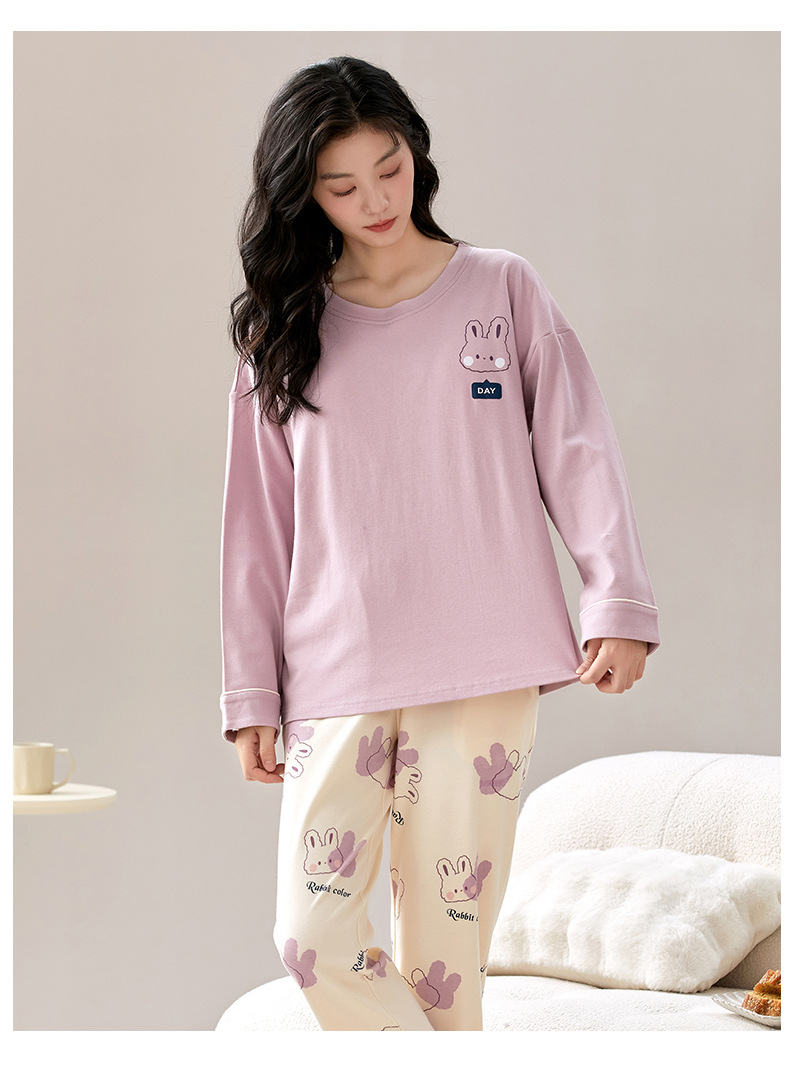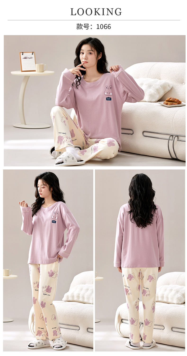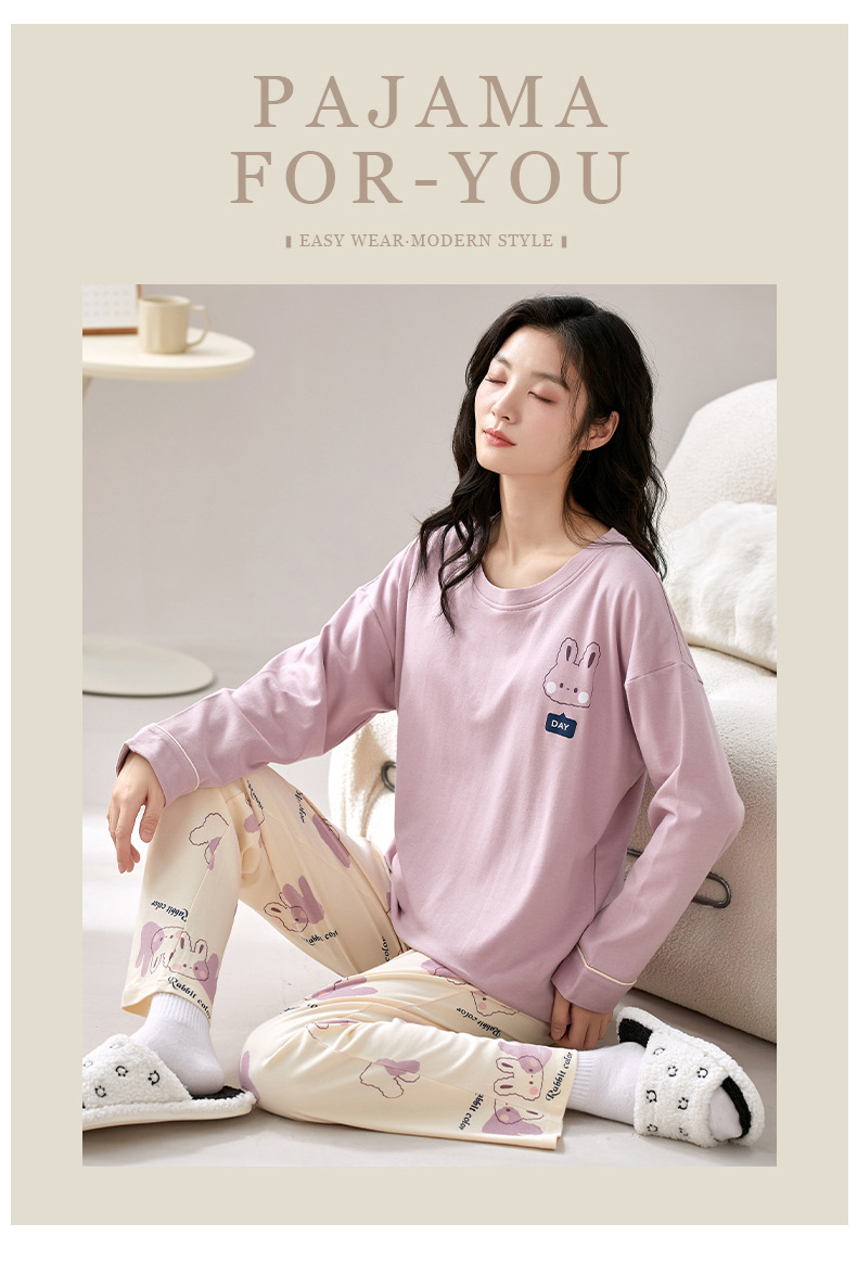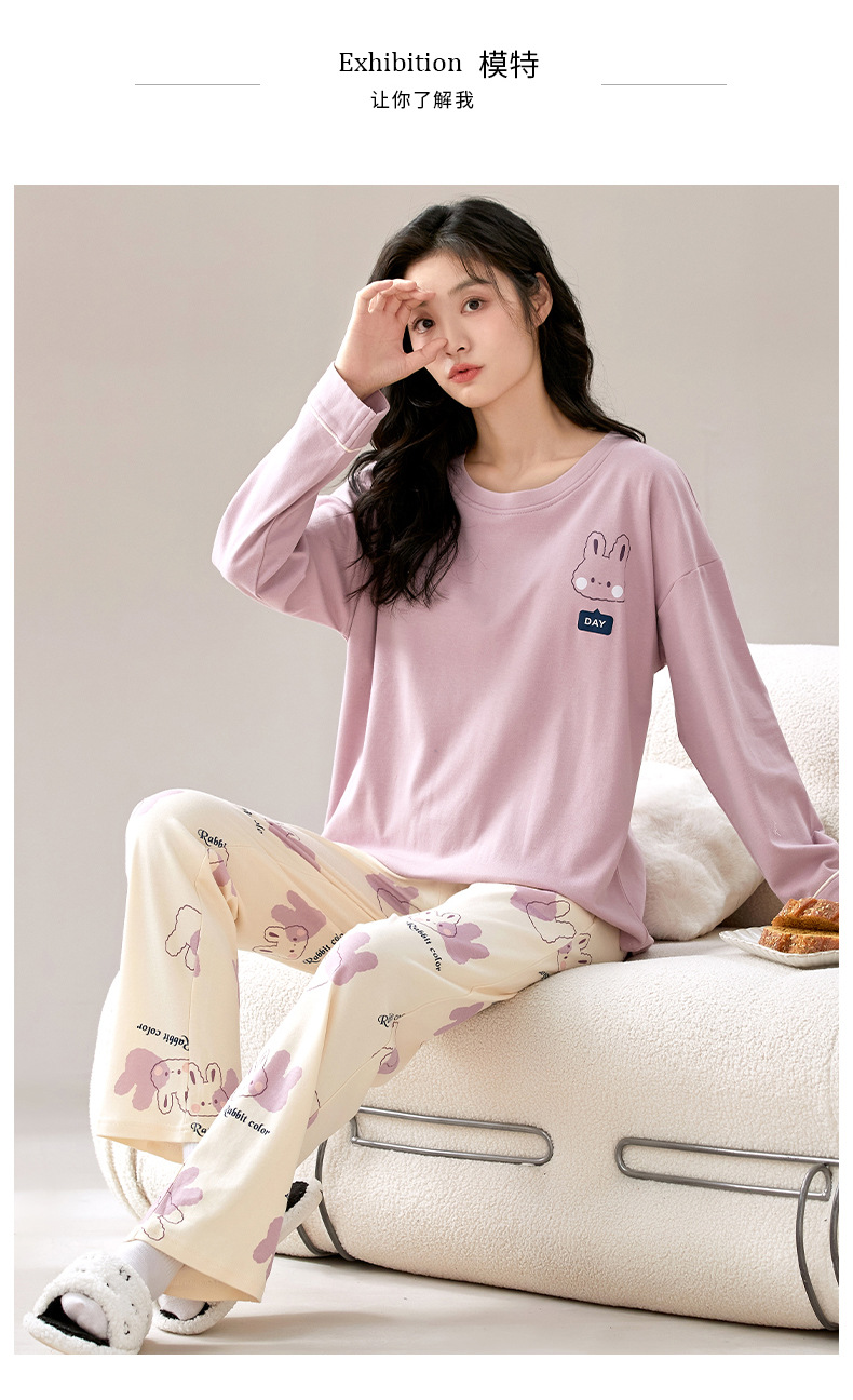 秋冬【卡通印花仿棉睡衣】带胸垫长袖长裤套装 可外穿大码休闲
