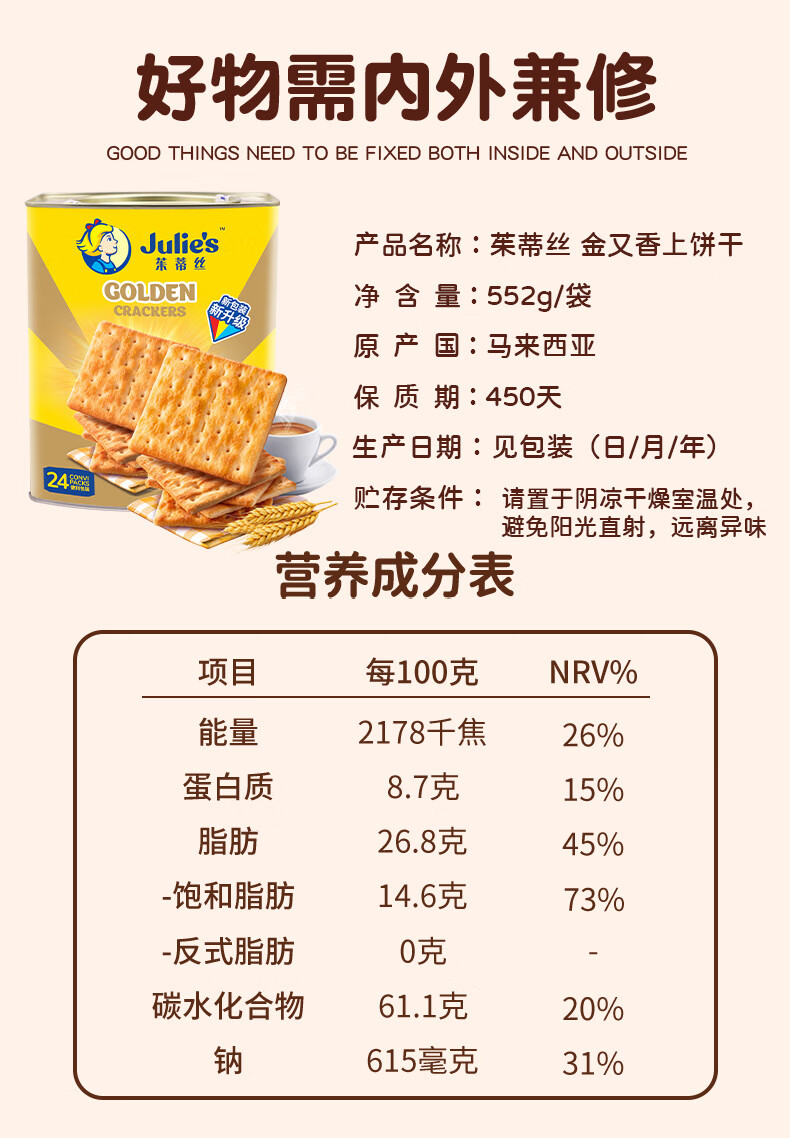 马来西亚茱蒂丝金又香上苏打饼干552g/152460 自然发酵层层叠压酥脆可口