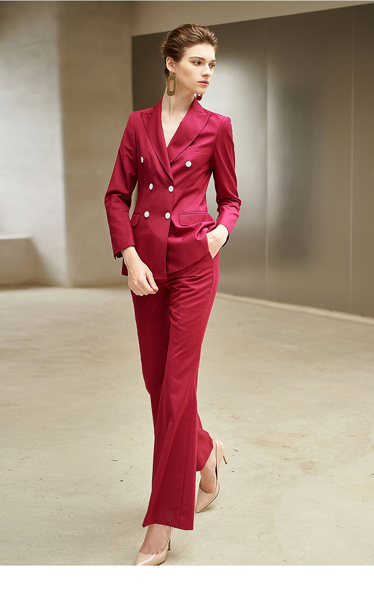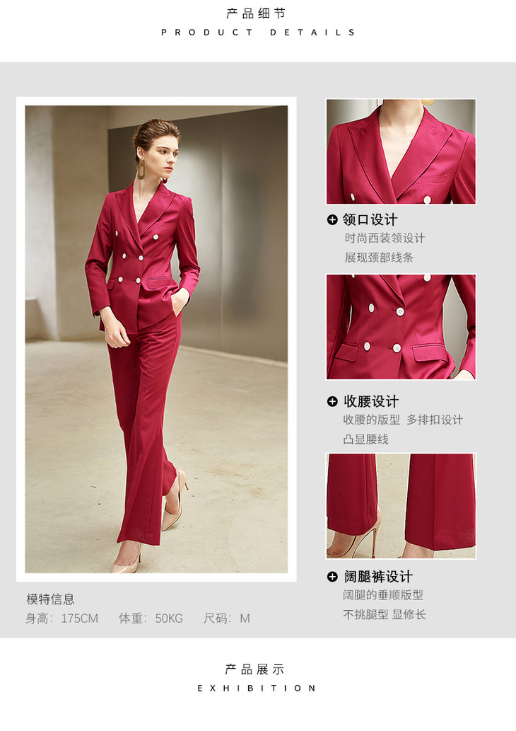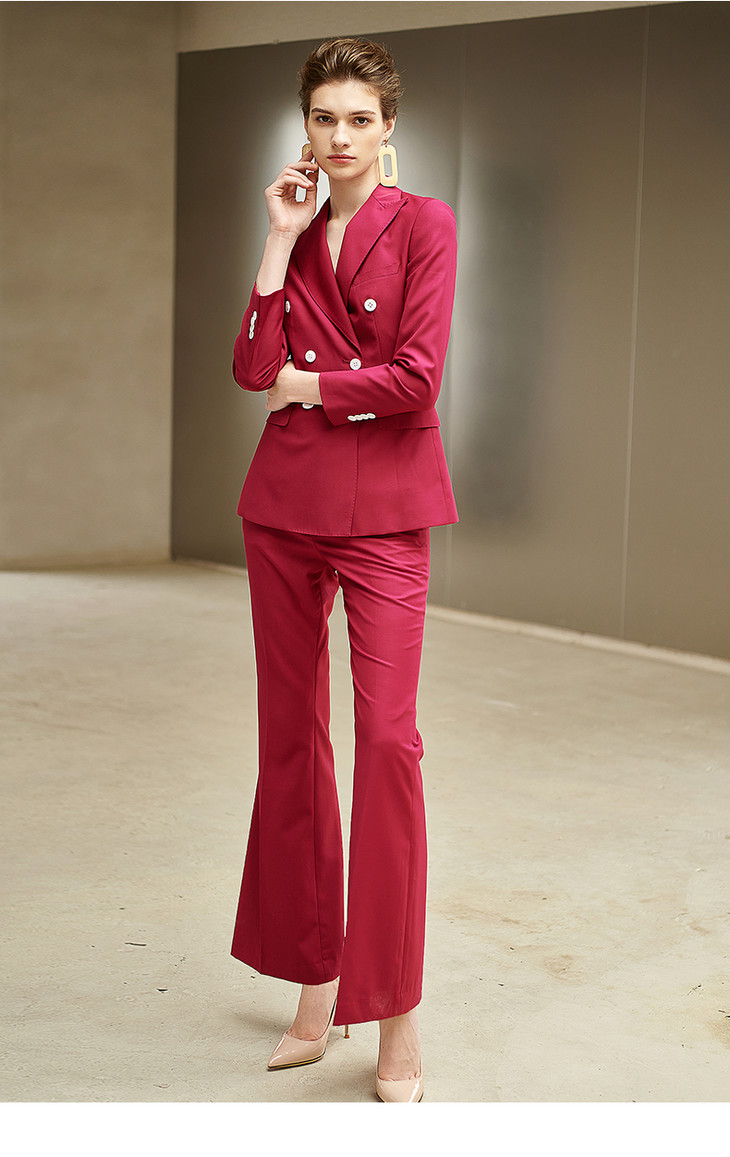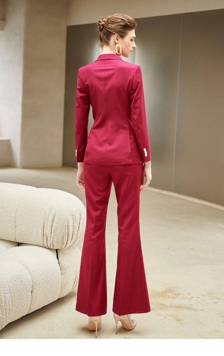 IWY/红色长袖西装微喇裤套装203127C1+P3