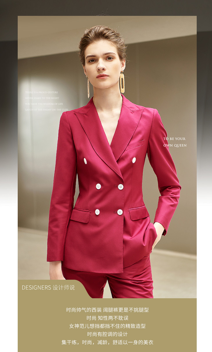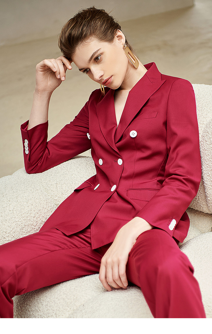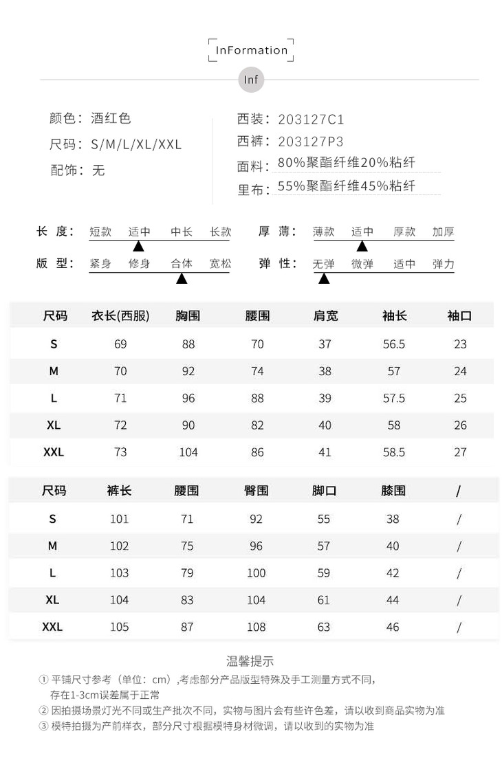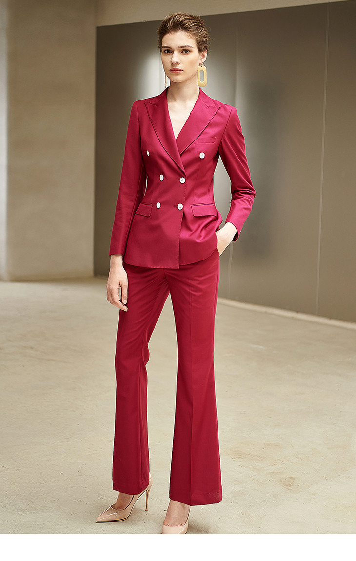 IWY/红色长袖西装微喇裤套装203127C1+P3