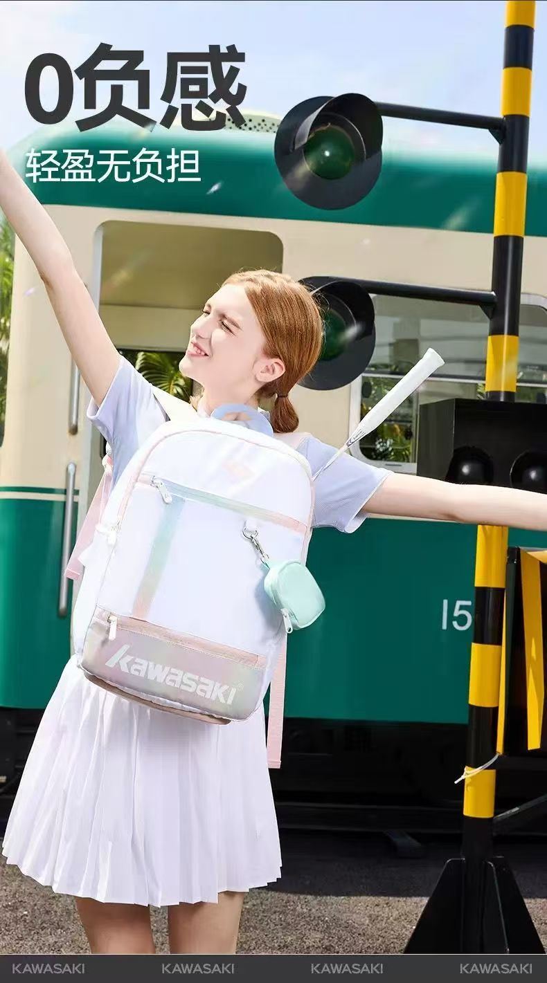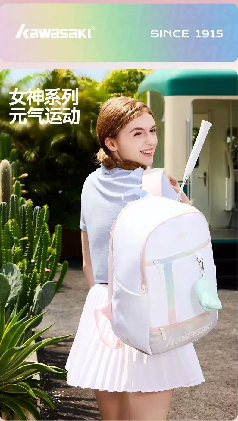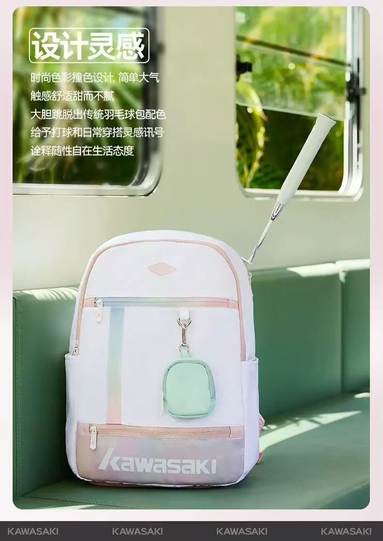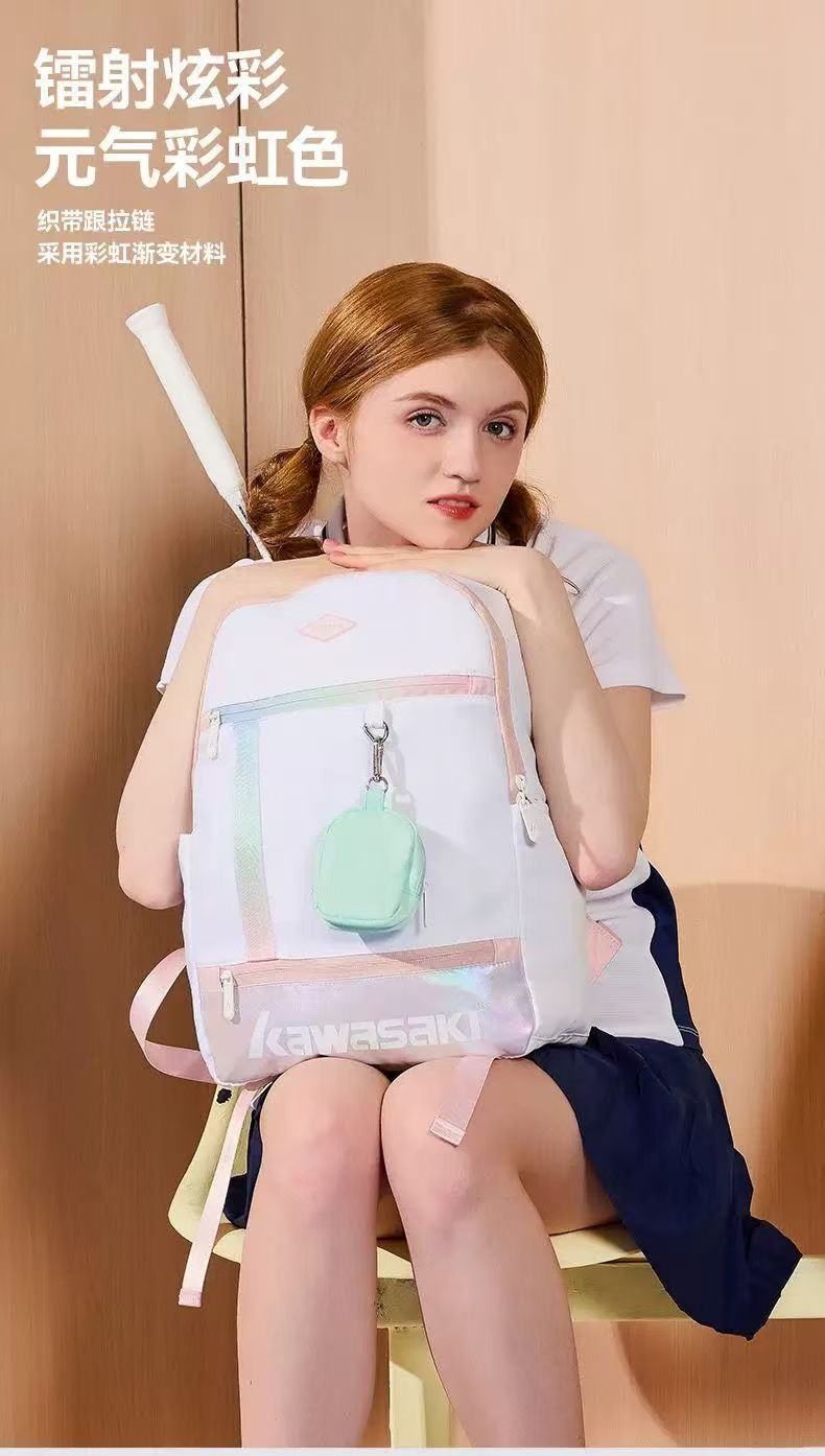 Kawasaki川崎羽毛球包双肩独立鞋仓男女款2024新款彩虹多功能拍包