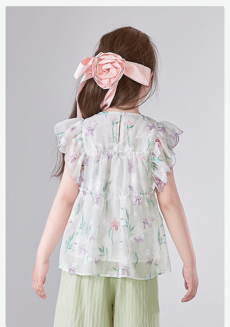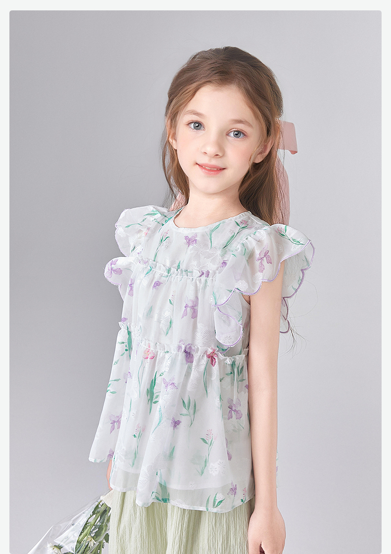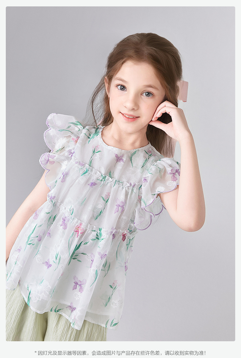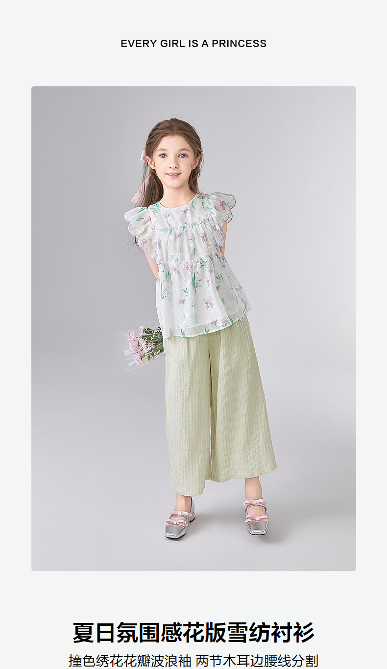 笛莎Deesha 童装女童衬衫2025夏新款女童夏日氛围感花版雪纺衬衫