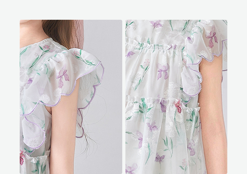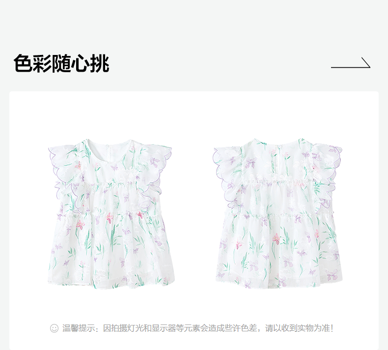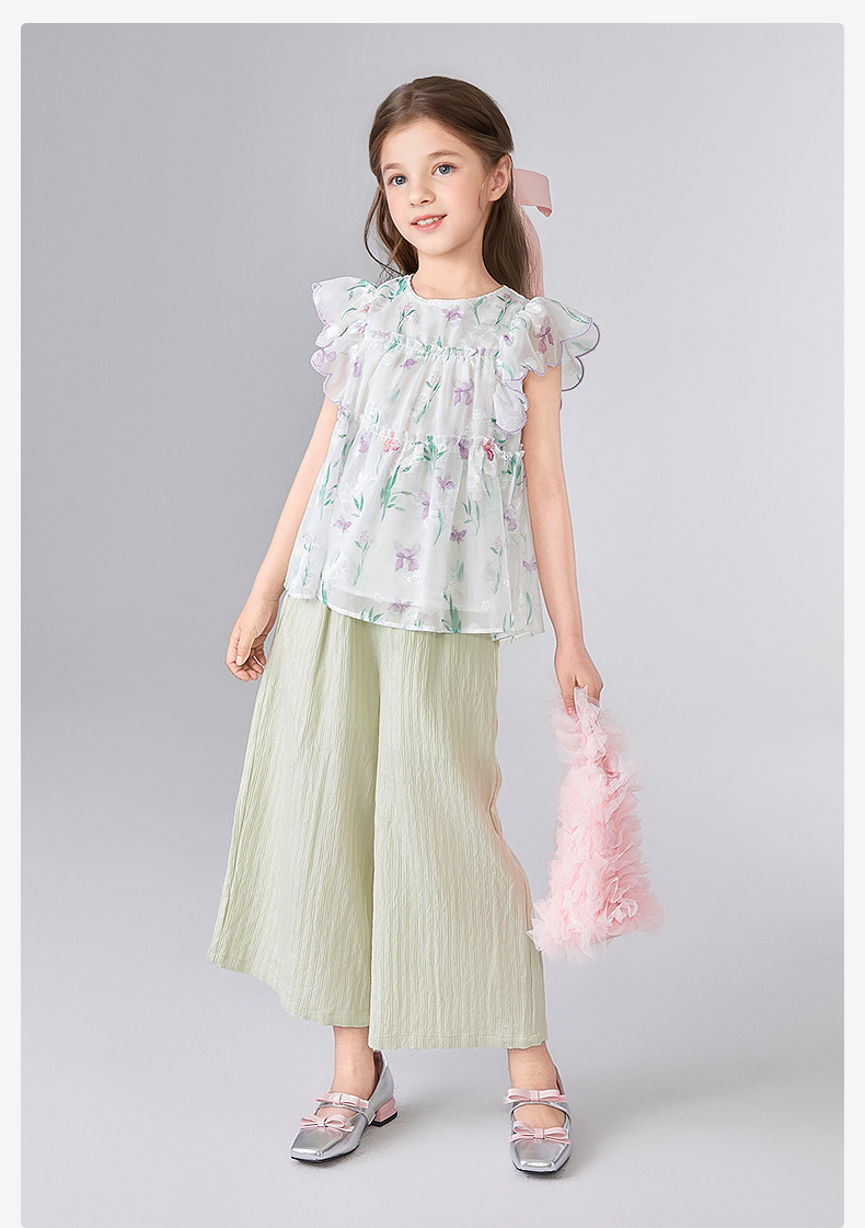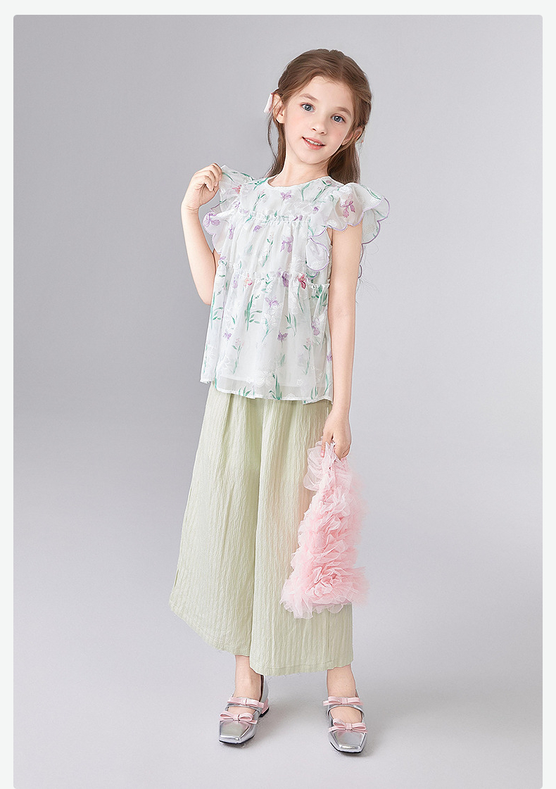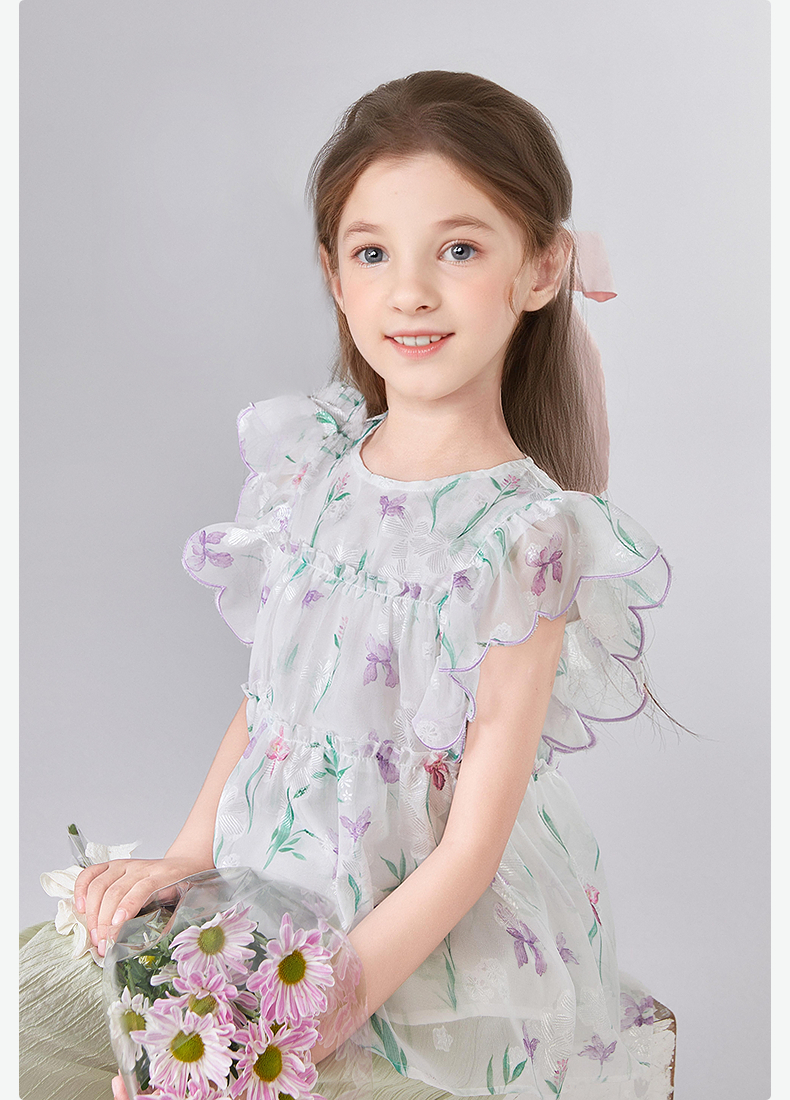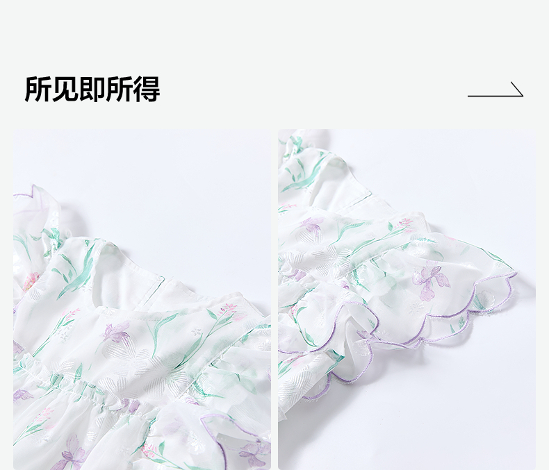 笛莎Deesha 童装女童衬衫2025夏新款女童夏日氛围感花版雪纺衬衫