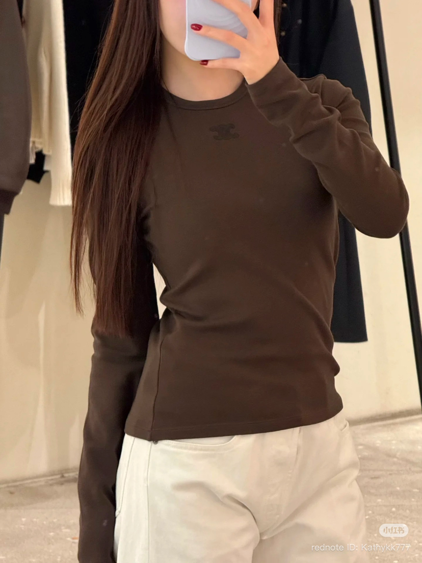 129-7 渠道货 自留XL ce 26ss早春 略高圆领长袖T恤 内搭单穿