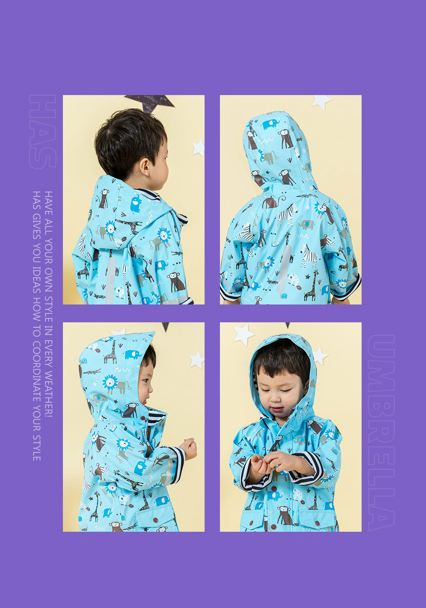 韩国HAS儿童雨衣幼儿园宝宝男女童小孩全身轻薄小学生雨披斗篷式