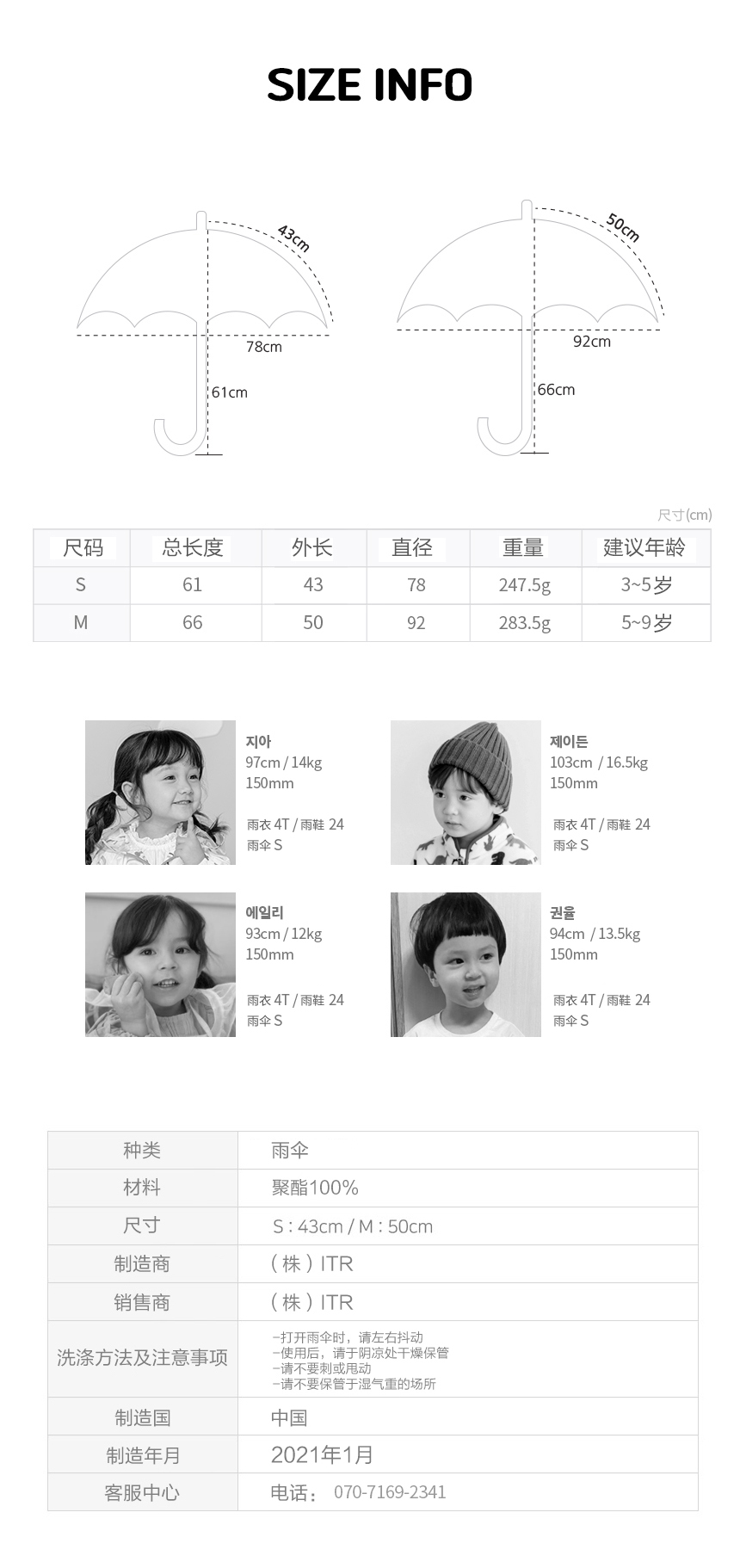 韩国HAS儿童雨伞男女童幼儿园小学生上学雨具长柄晴雨两用太阳伞