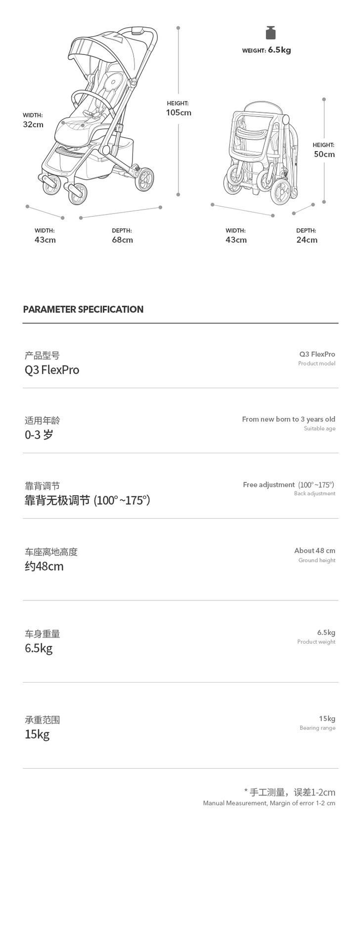 Qtus昆塔斯Q3 婴儿推车轻便折叠儿童伞车遛娃神器小怪兽