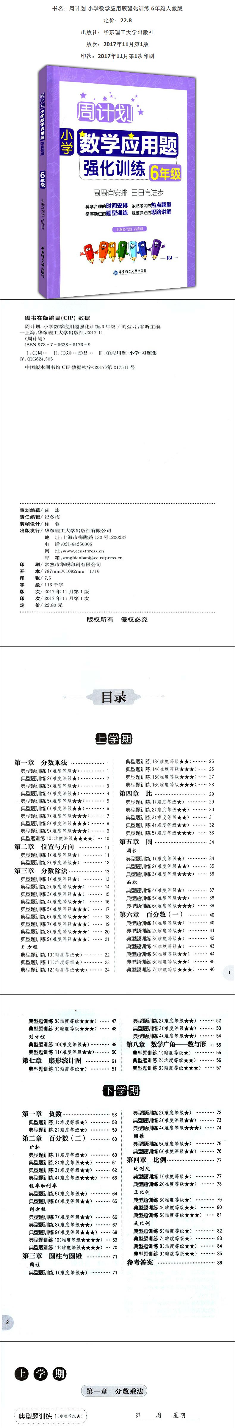 周计划小学数学应用题强化训练六年级大全同步天天练6年级上下册专项训练书阶梯思维训练练习册人教版通用华东理工大学出版社