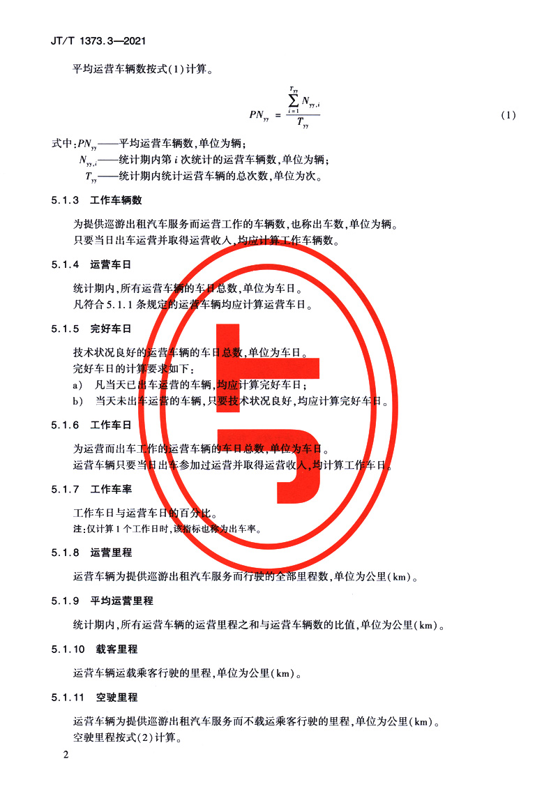 书名:城市客运经济技术指标计算方法 第3部分:巡游出租汽车(JT/T 1373.3—2021)