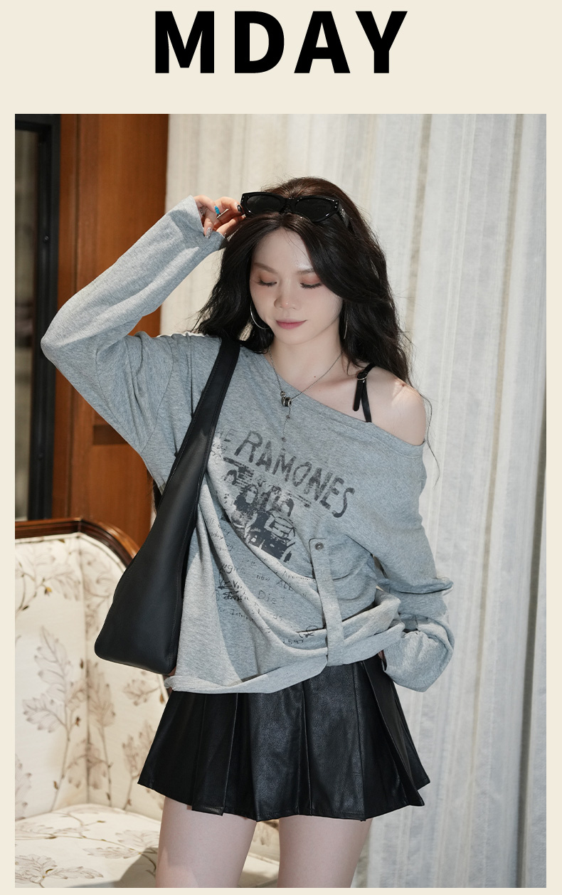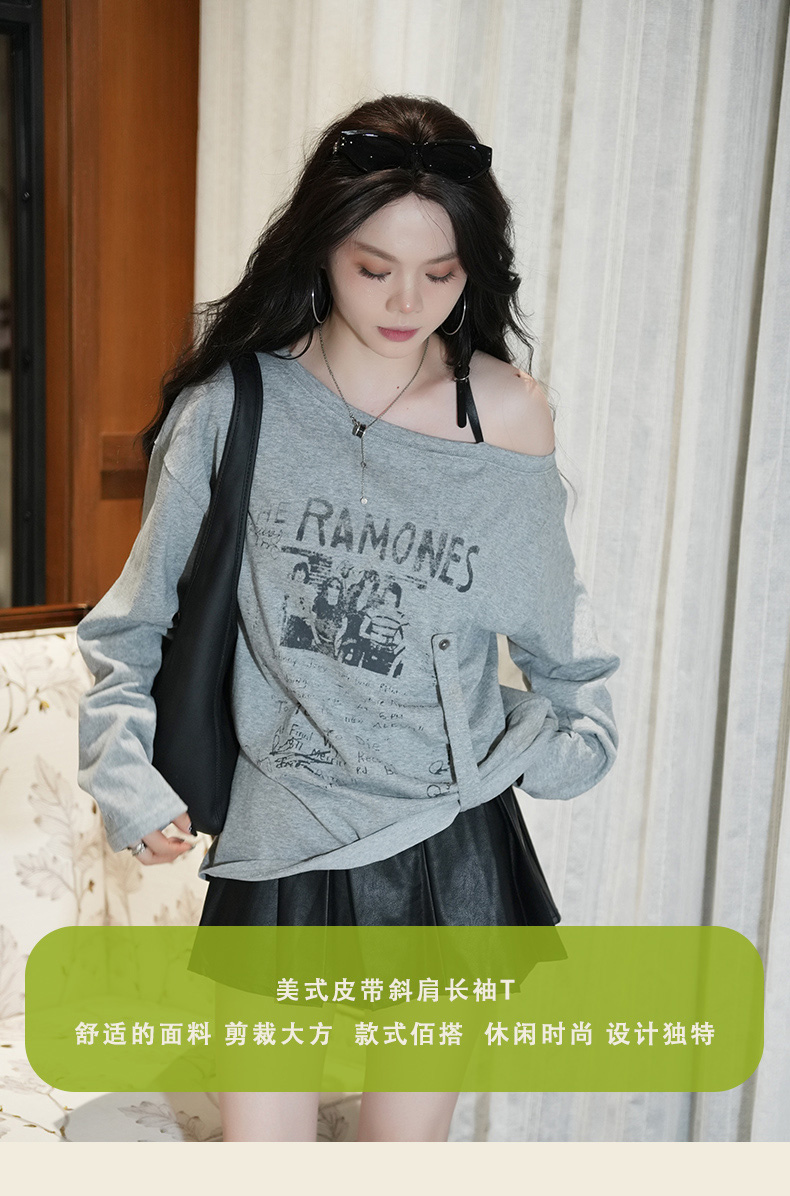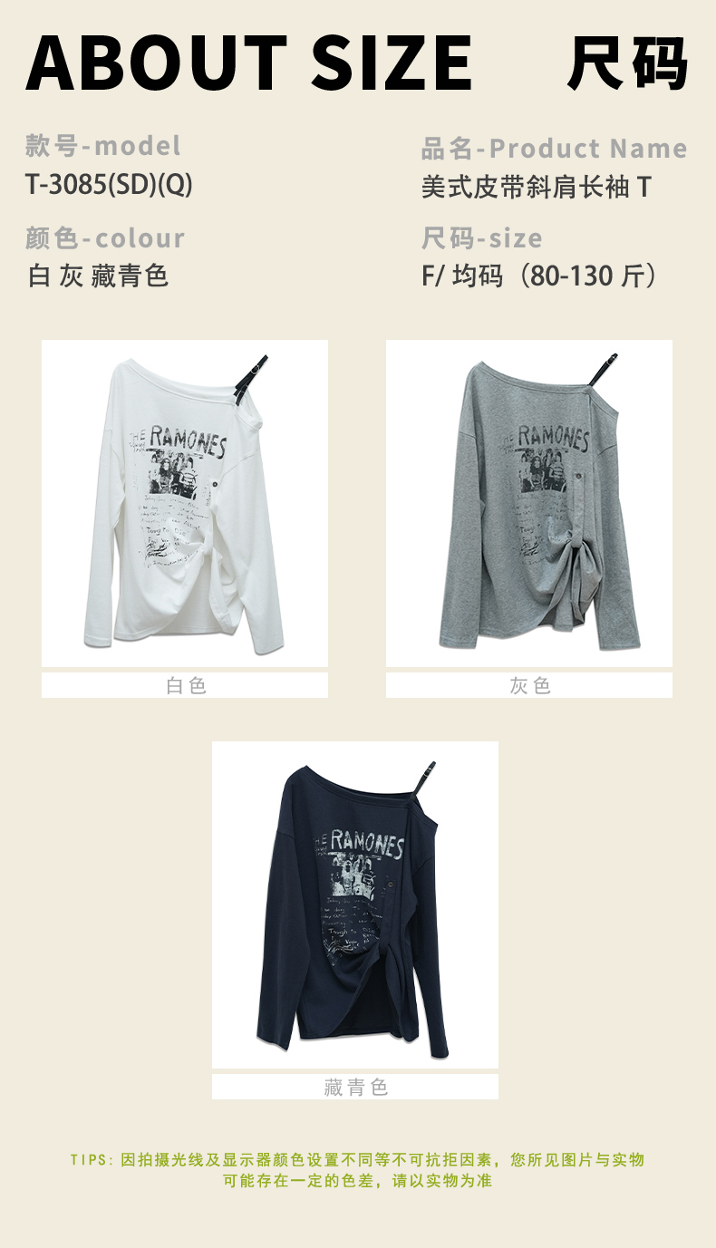 美式皮带斜肩褶皱长袖T纪念日百货门店同款165294246
