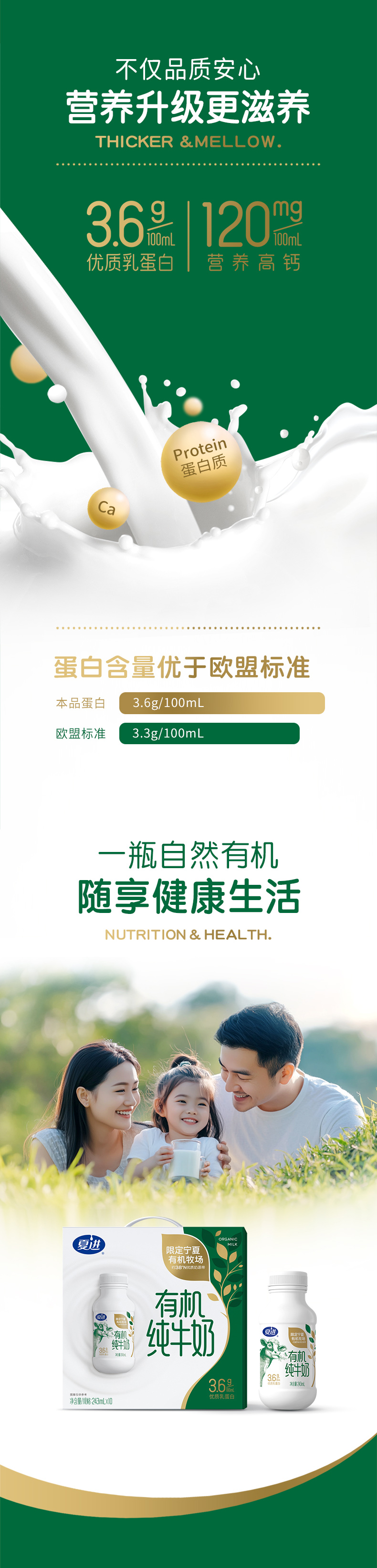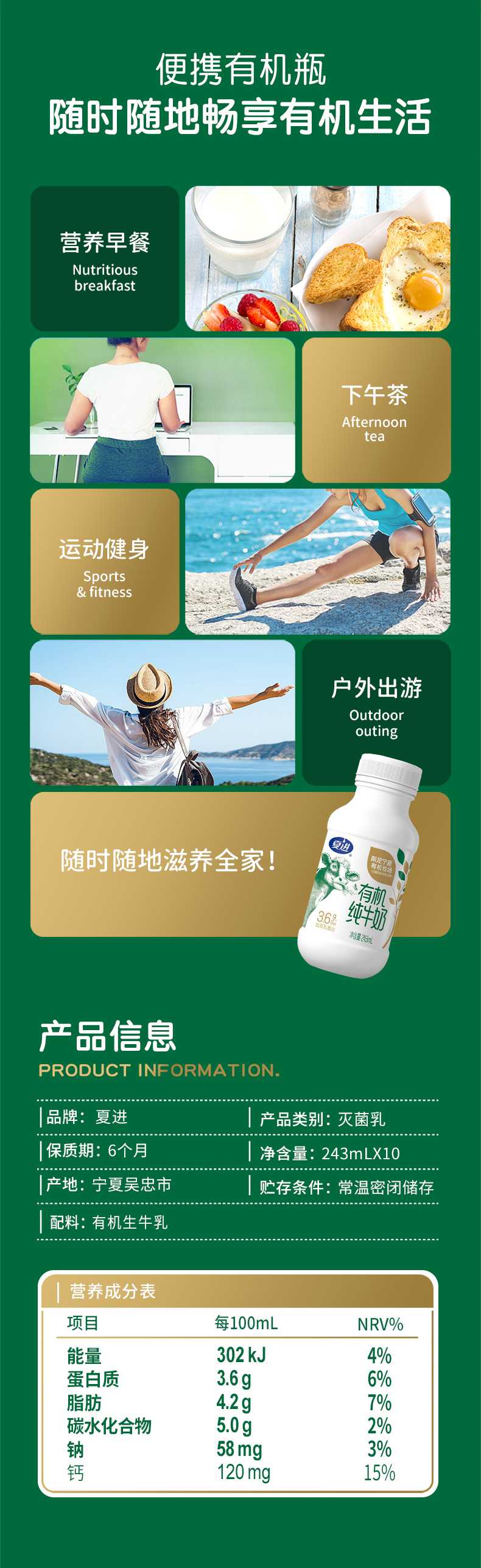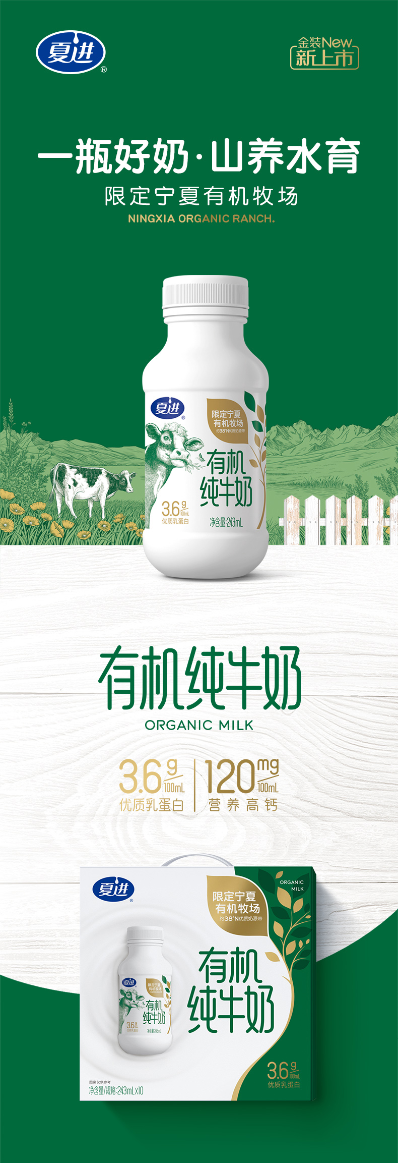 夏进瓶装有机纯牛奶(蛋白 3.6g)243ml×10瓶