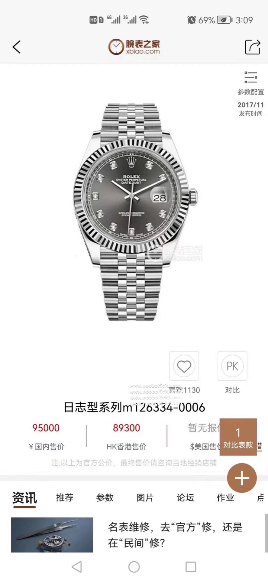 clean厂/C厂 劳力士126334 DATEJUST 日志