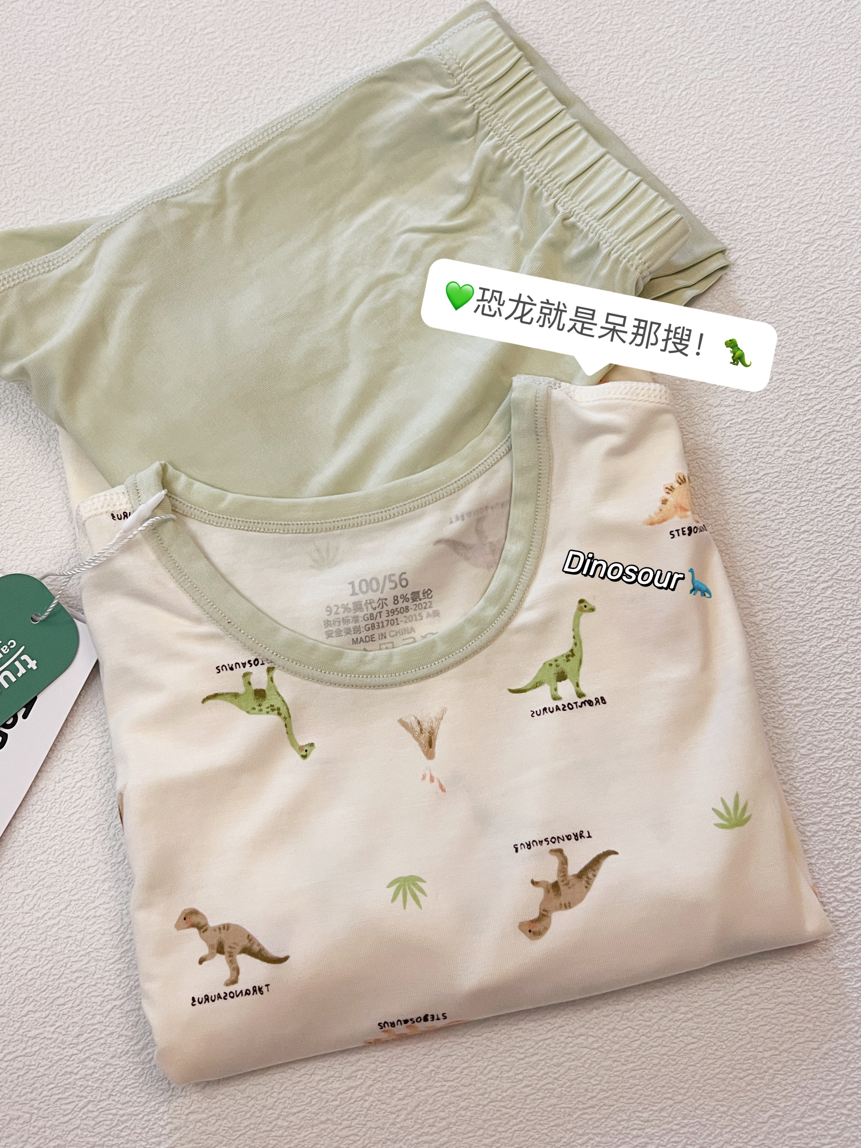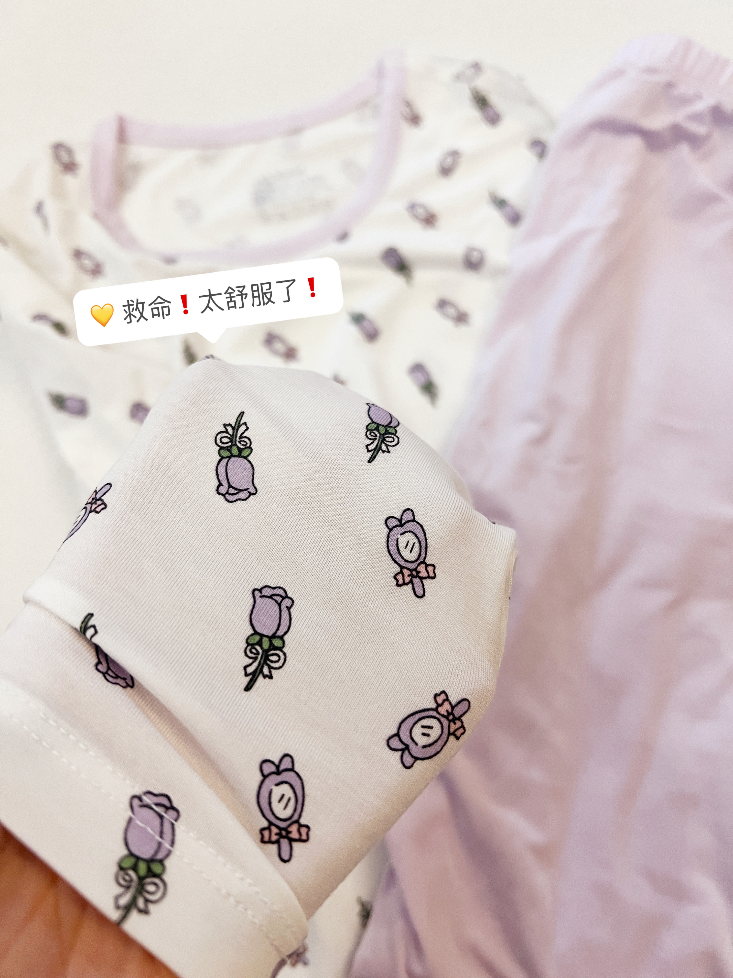 图案也非常可爱,弟弟这件是小恐龙,姐姐这件是紫色的棒棒糖,非常温柔的紫色。