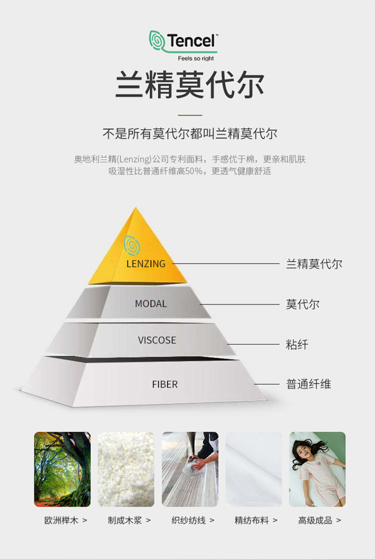 这是奥地利兰精公司专利面料,面料食物链顶端,手感比棉要更好更亲肤,吸湿性也比普通纤维要高出50%,会更透气更健康