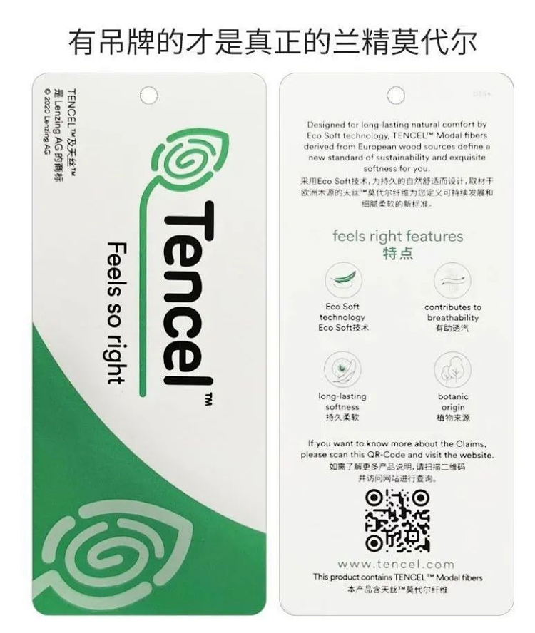 内衣套装的吊牌是有兰精莫代尔吊牌认证的
