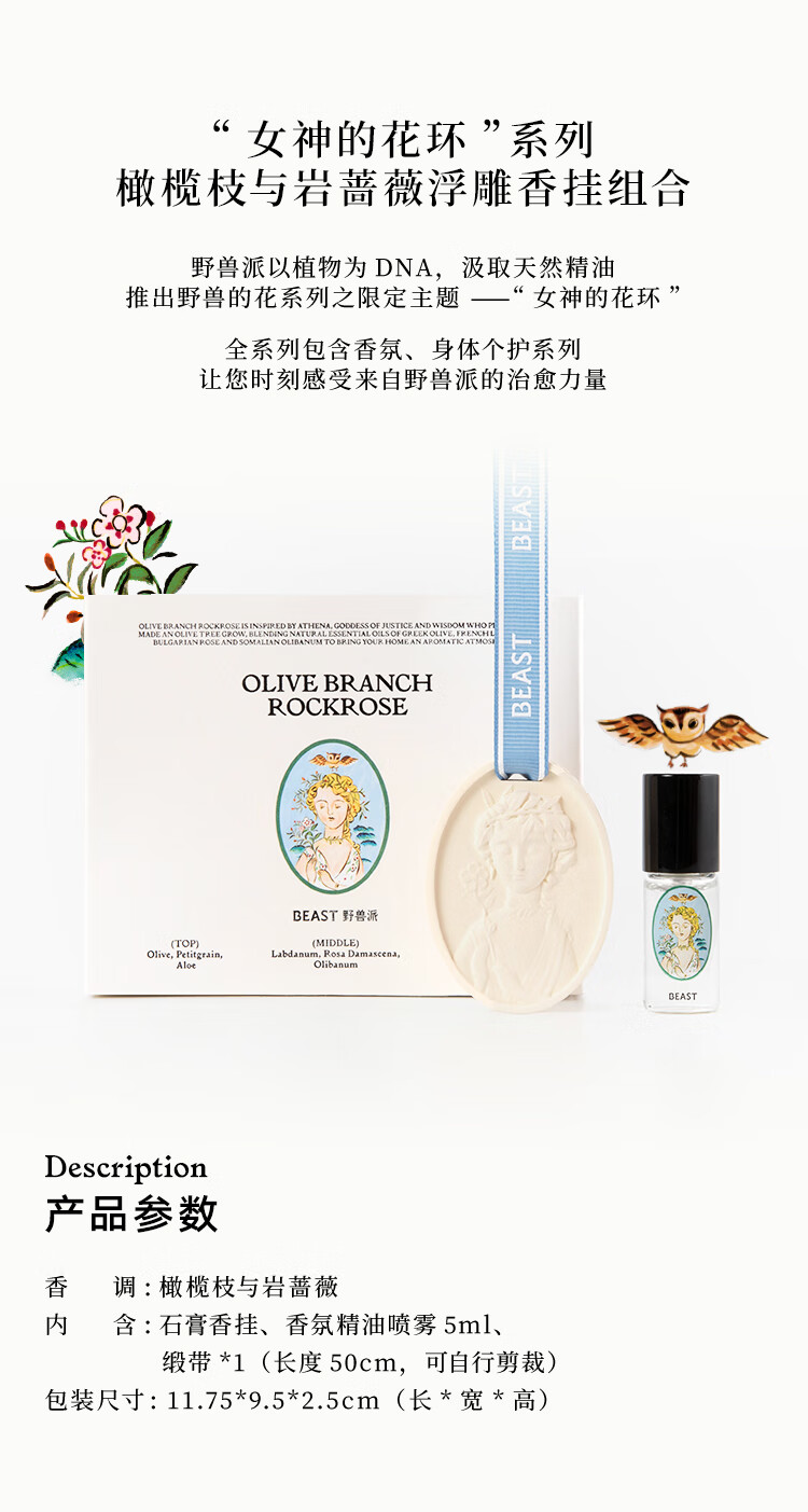 野兽派(THE BEAST)"女神的花环"系列植萃精油钟罩寻香礼盒限定香氛香挂组合