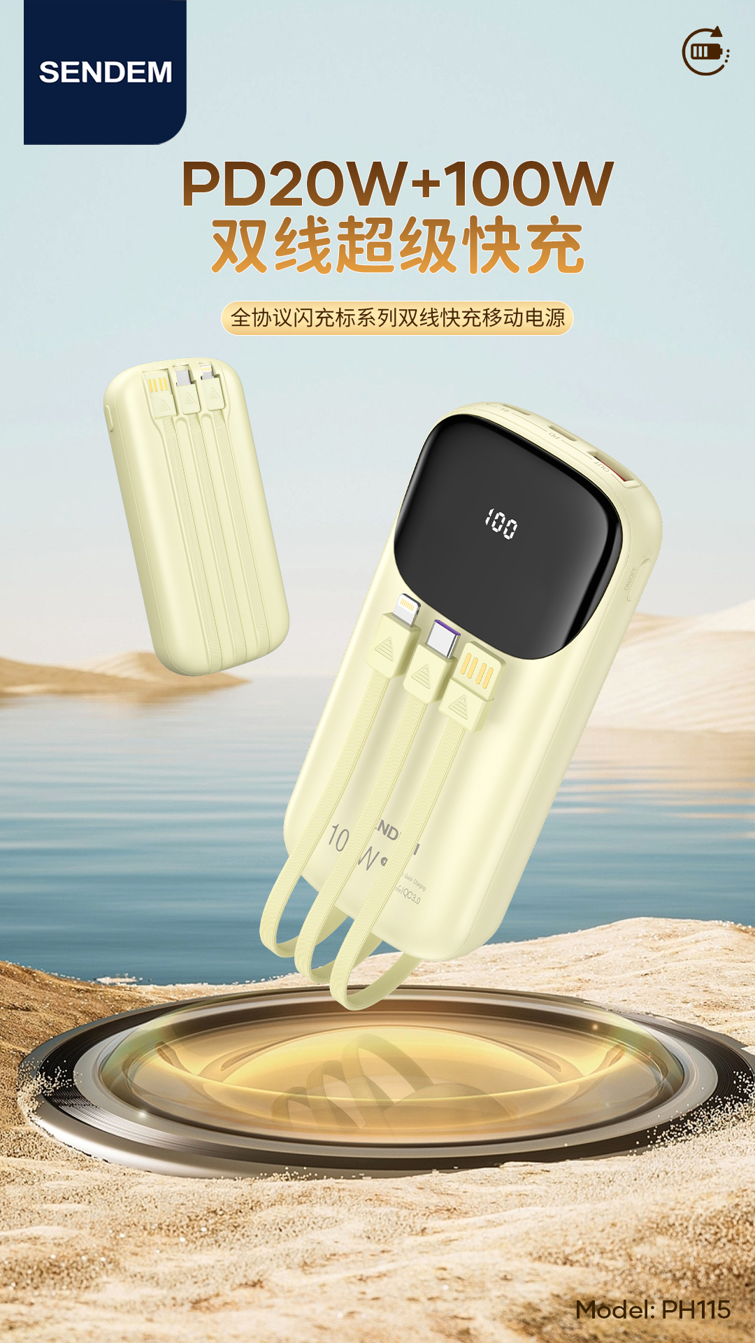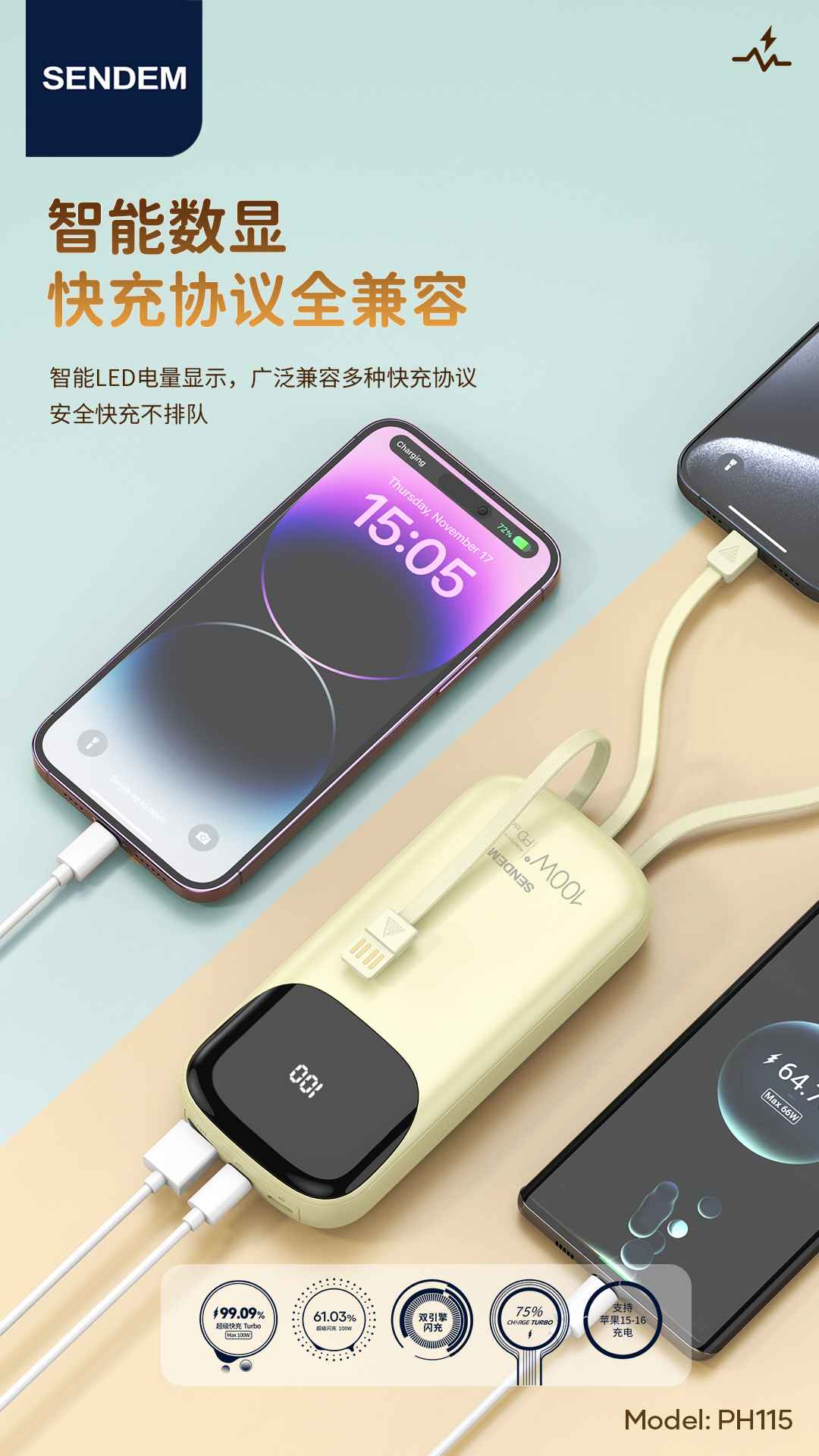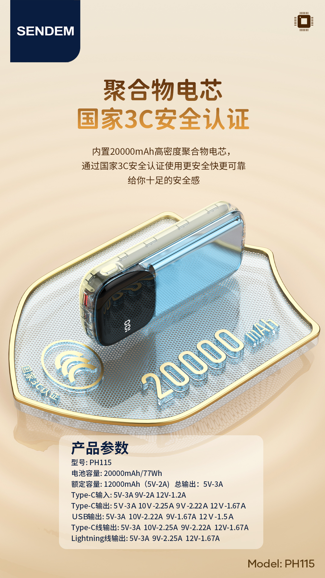 ph115全协议闪充显标系列pd双线快充移动电源充电宝20000mAh