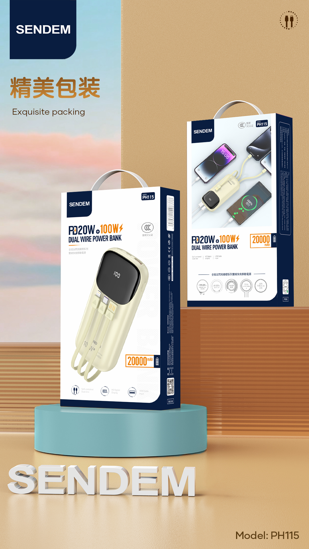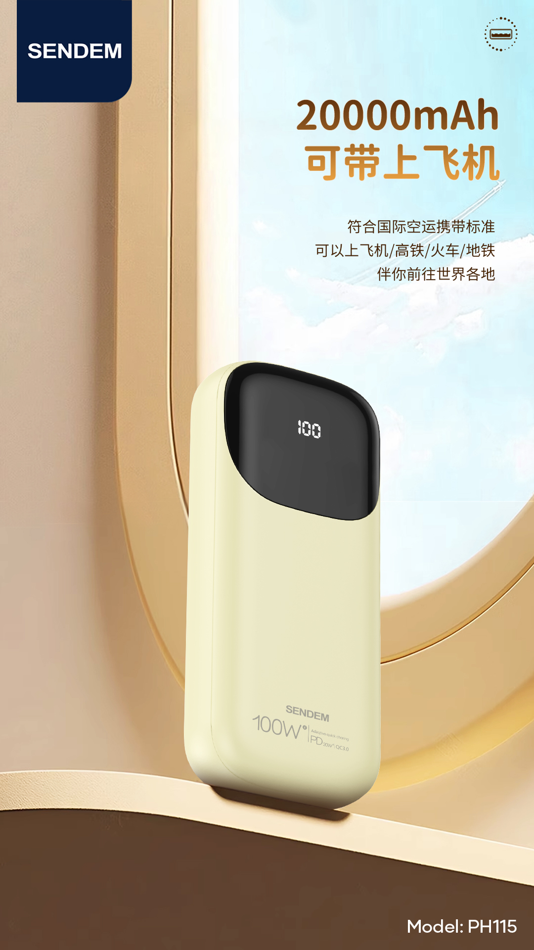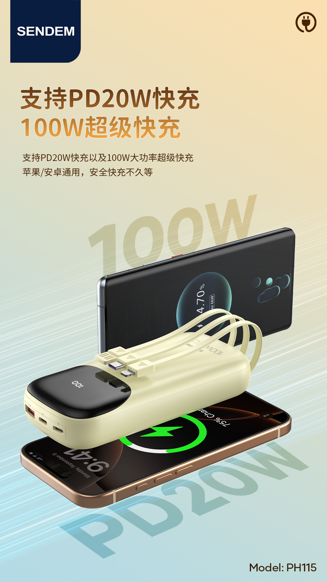 ph115全协议闪充显标系列pd双线快充移动电源充电宝20000mAh