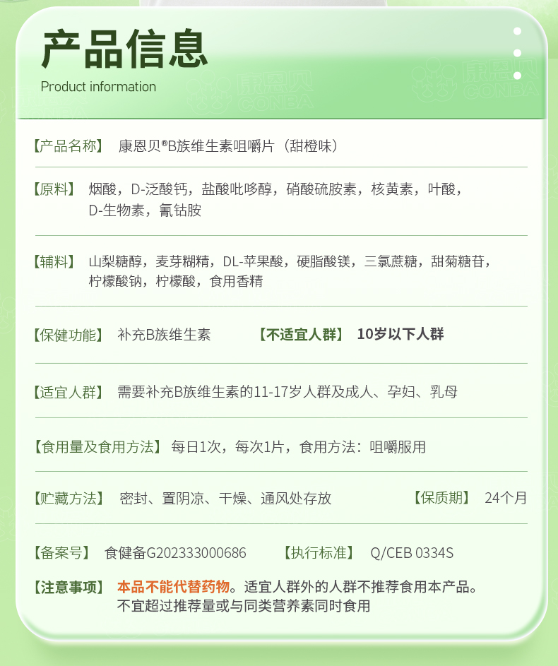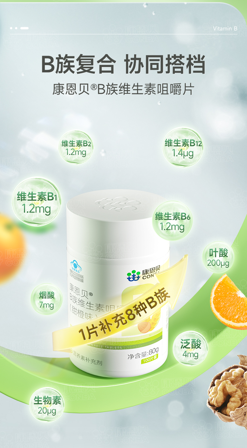 康恩贝B族维生素片多种复合综合b1 b2 b6B12男女性vb熬夜 搭配vc