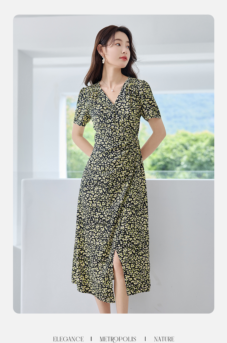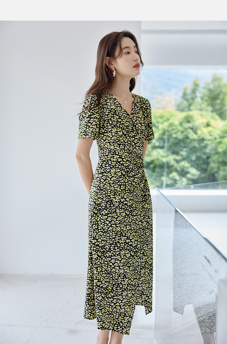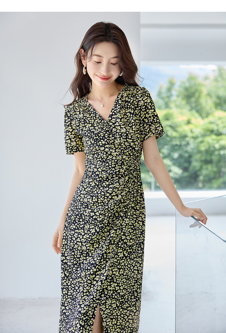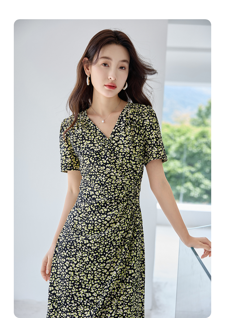 【专属特价】熙世界法式茶歇复古碎花裙子夏2025新款气质V领收腰显瘦连衣裙