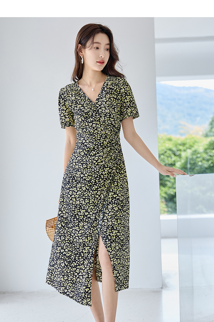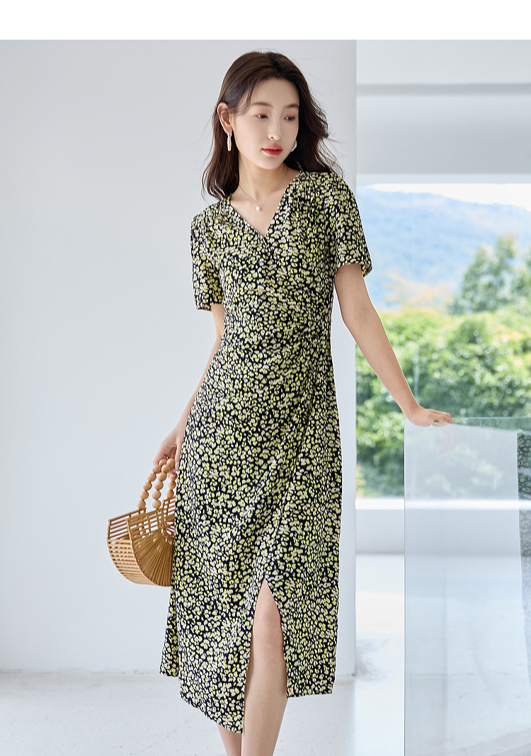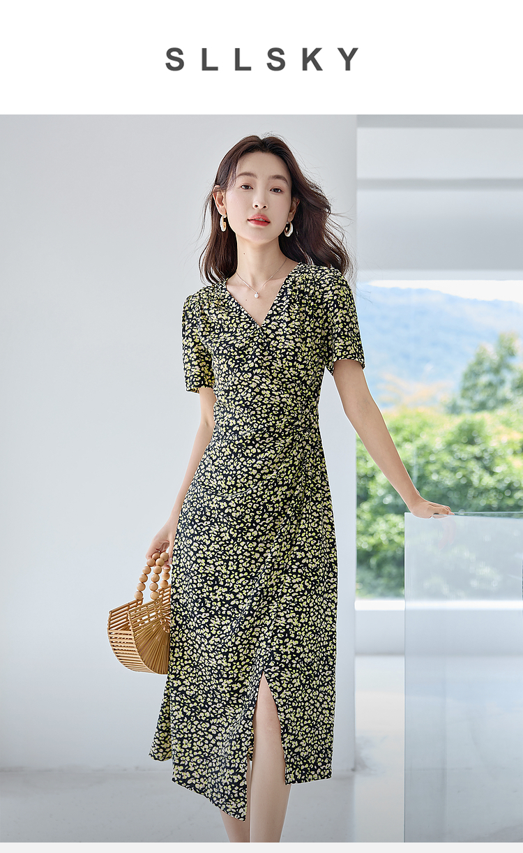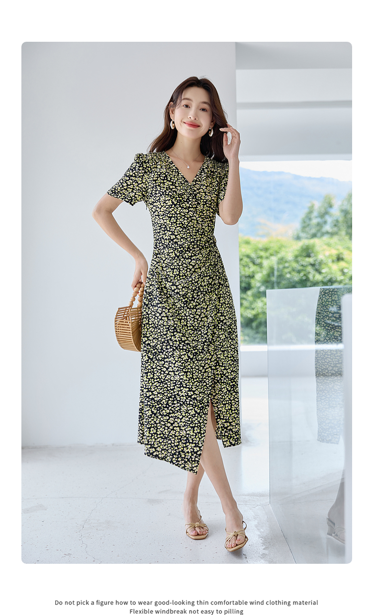 【专属特价】熙世界法式茶歇复古碎花裙子夏2025新款气质V领收腰显瘦连衣裙