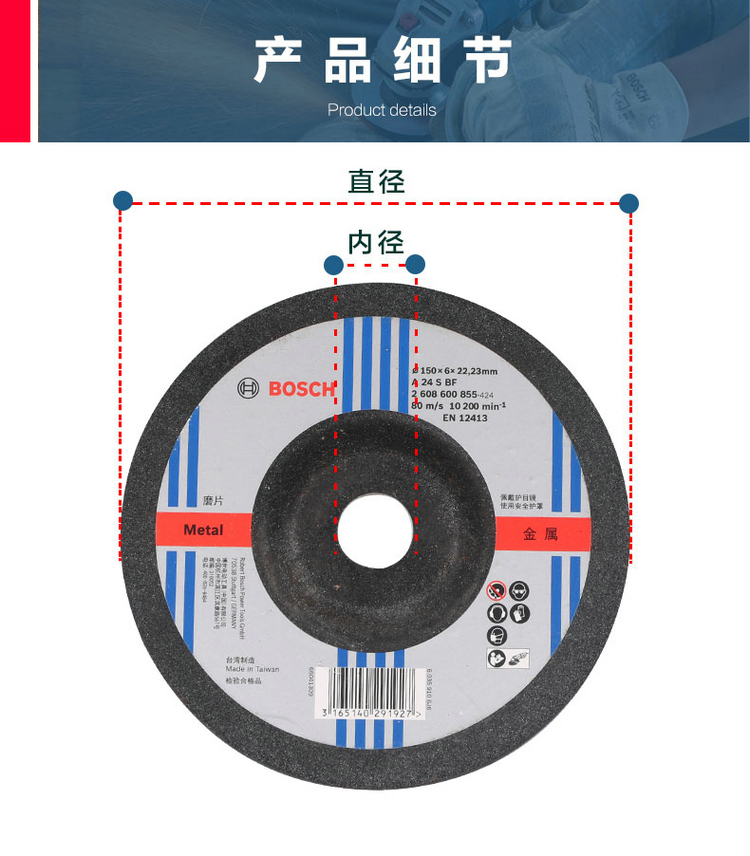 博世角磨机磨片切割片金属打磨片100/105/125/150/180/230mm【工具】