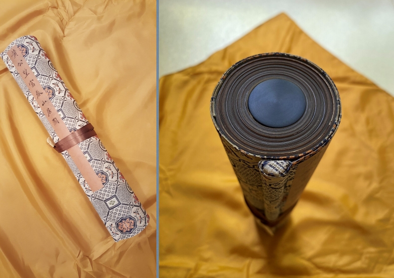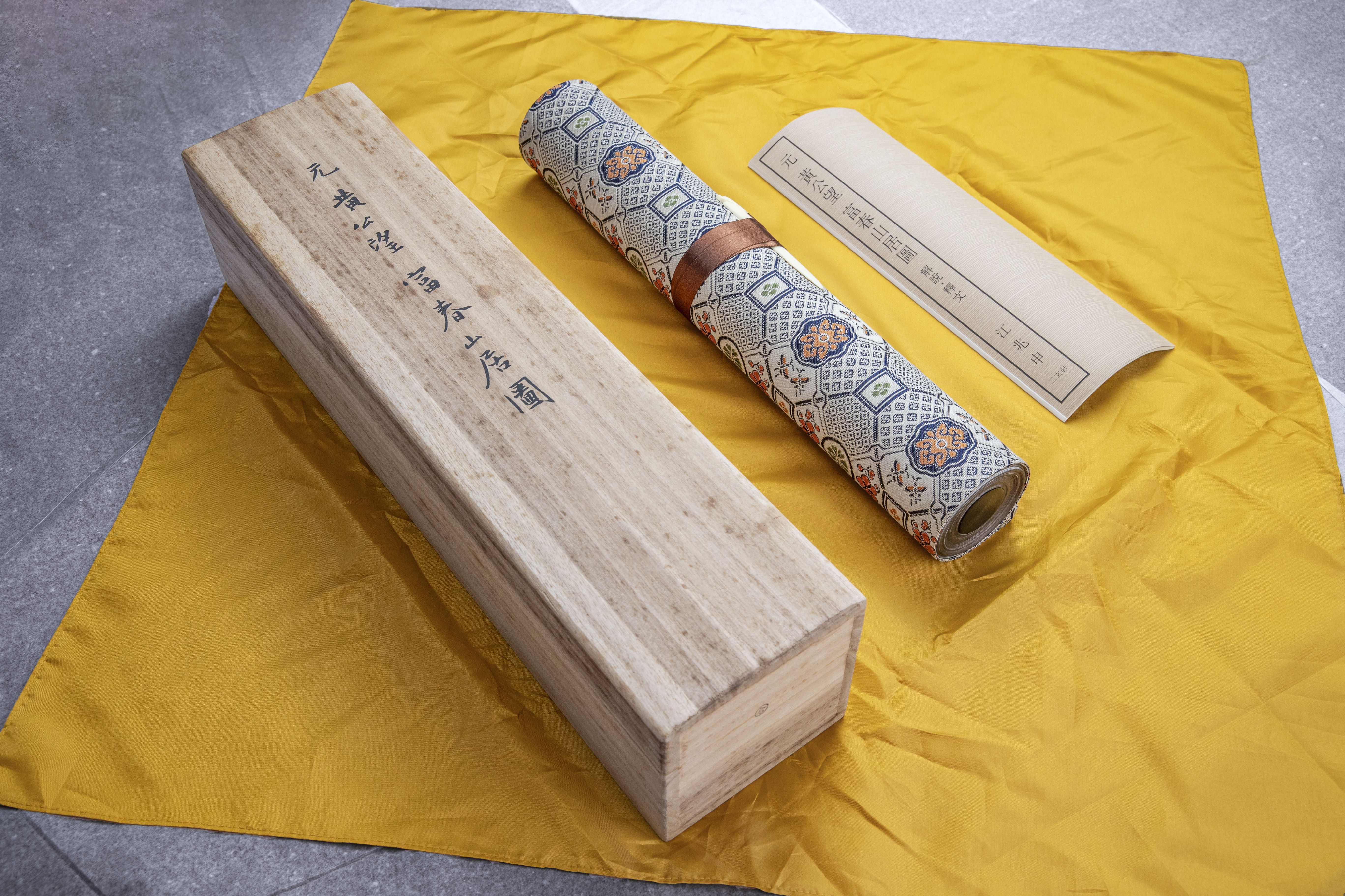 纸、绢、合成纤维等印刷材料的 开始也遇到了极大的困难。以某种西洋纸和非洲进口的特殊原料混合,加入特殊的材料使其产生柔软的感触,另一方面,提高印时的伸缩安定性,进而制成特种纸 材,经过无数次的反复实验终于成功地开发了于原蹟极为相似的印刷素材。在装裱上,从根本上改良了原有的材料和技术。中国书画还是中国式的文人装裱简洁大 方,极力排除了日本传统的装裱方式。方使原蹟逼真地再现。