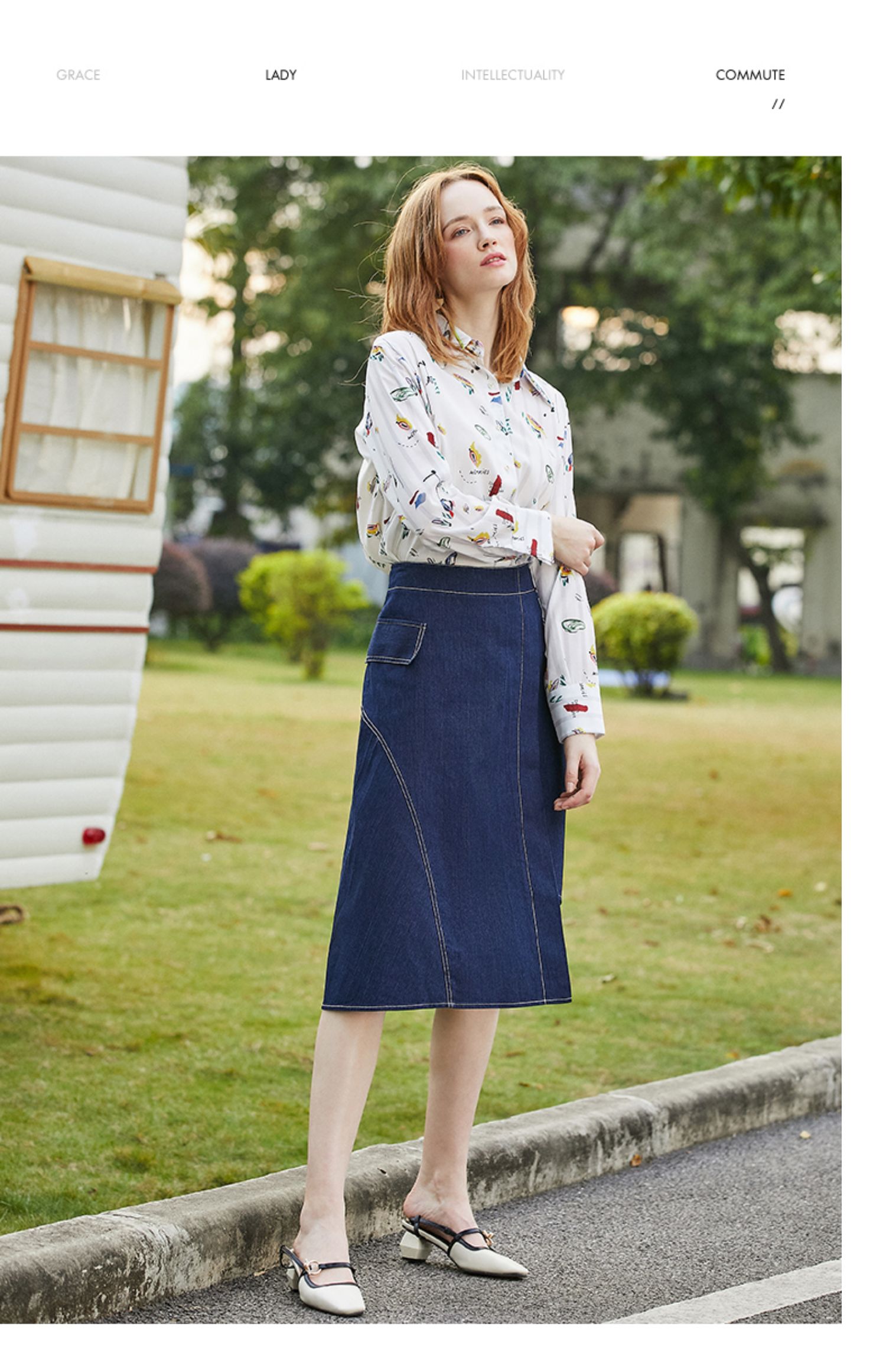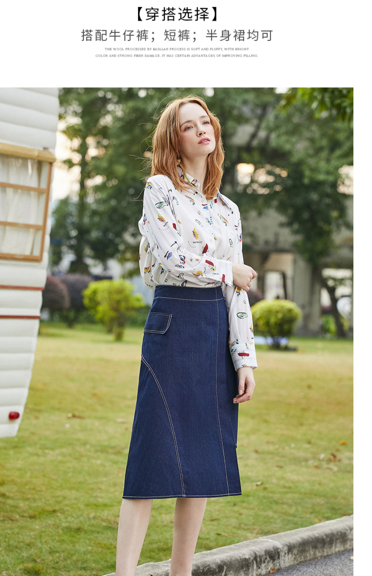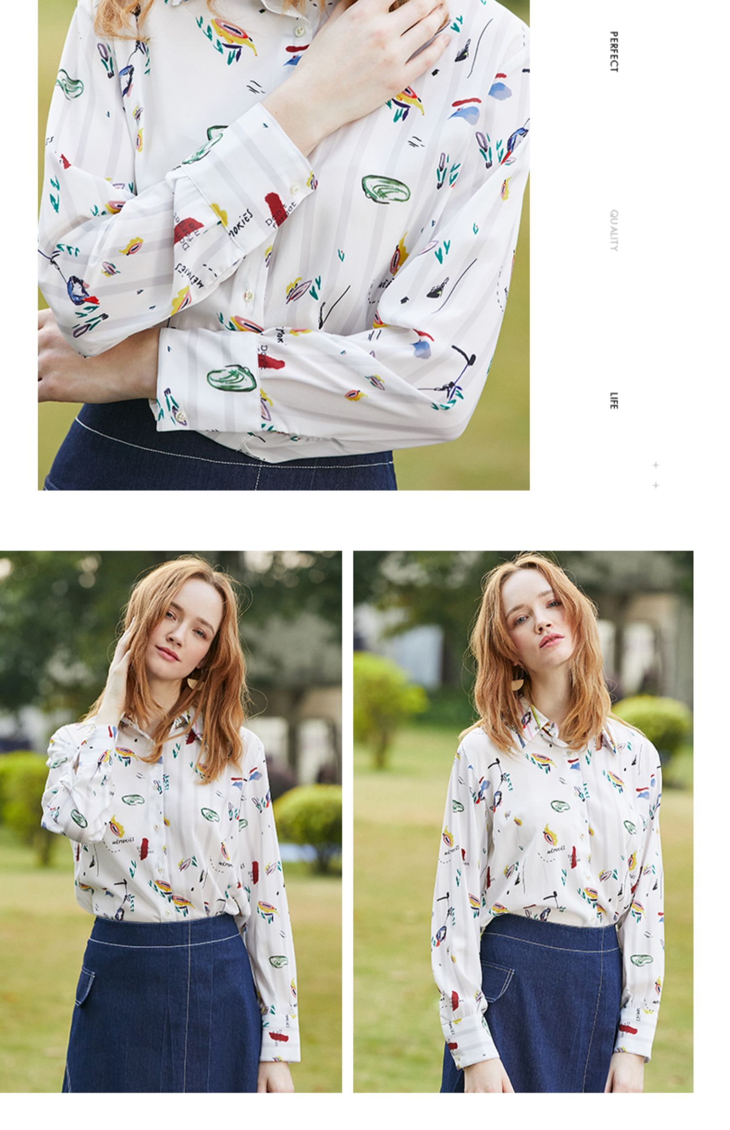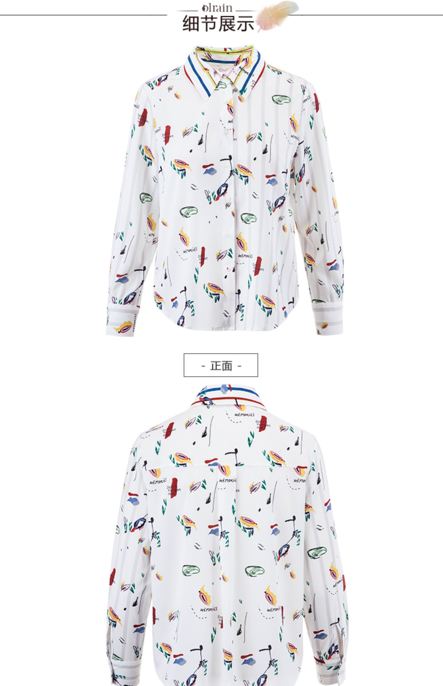 欧芮儿2021冬季新款女装印花白色衬衫女长袖OL风气质上衣
