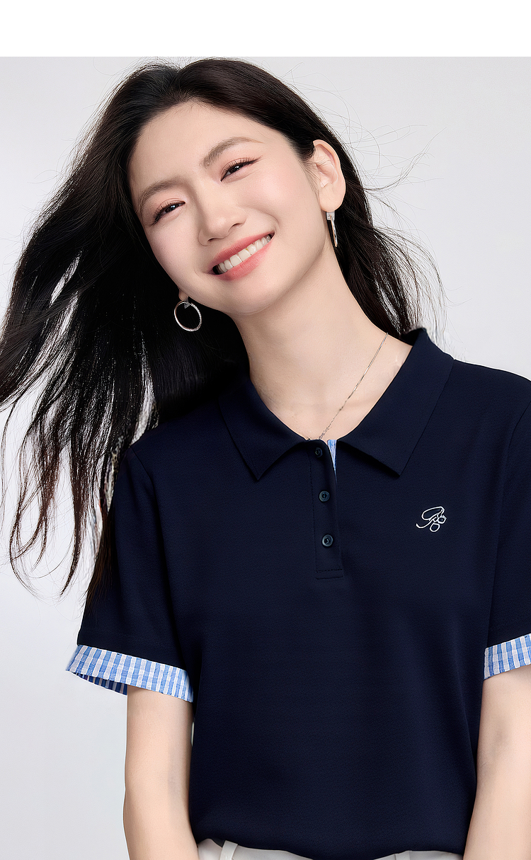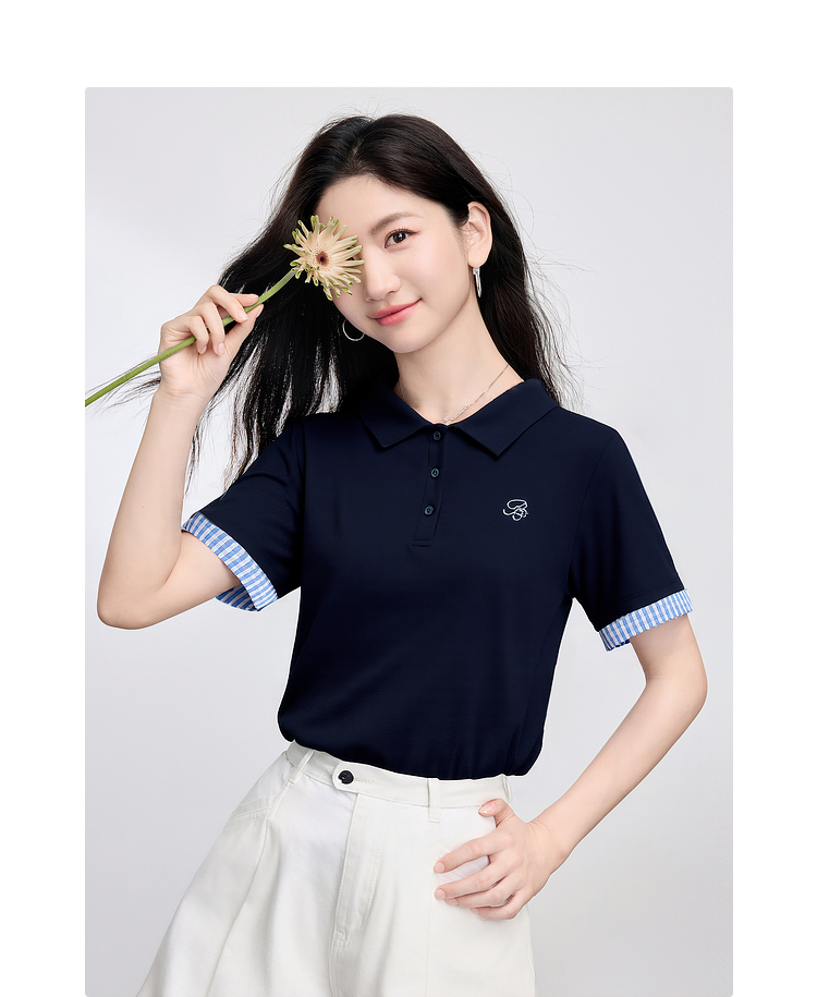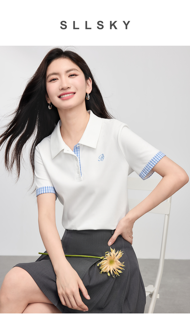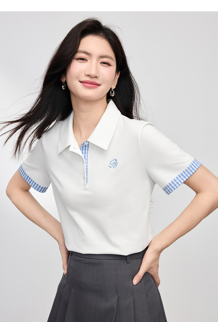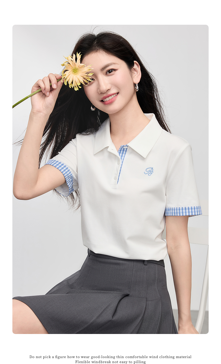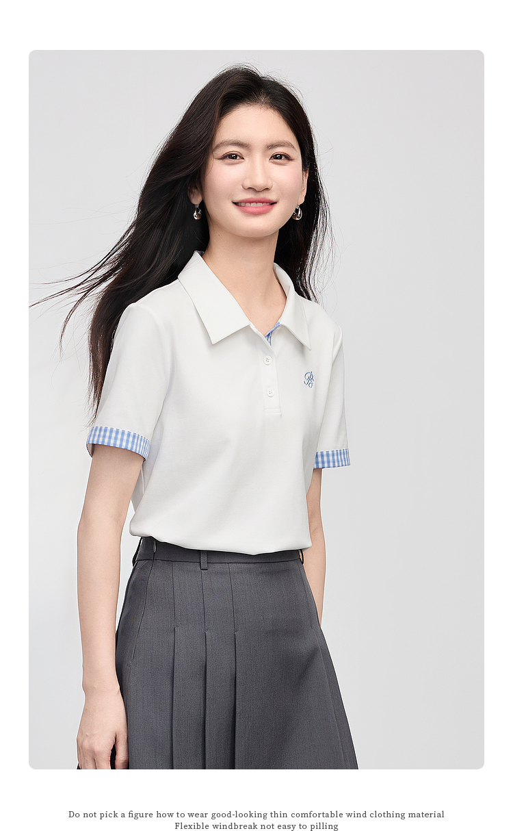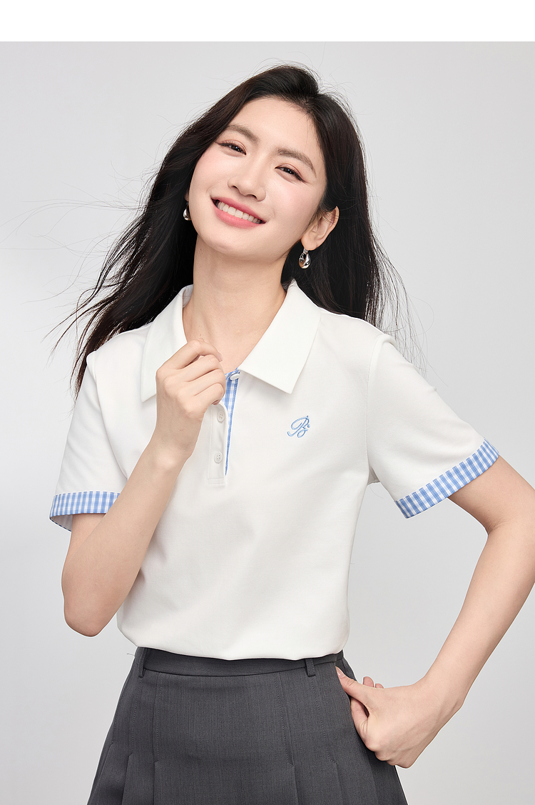 【专属特价】熙世界休闲撞色POLO衫女短袖夏小个子复古翻领T恤上衣