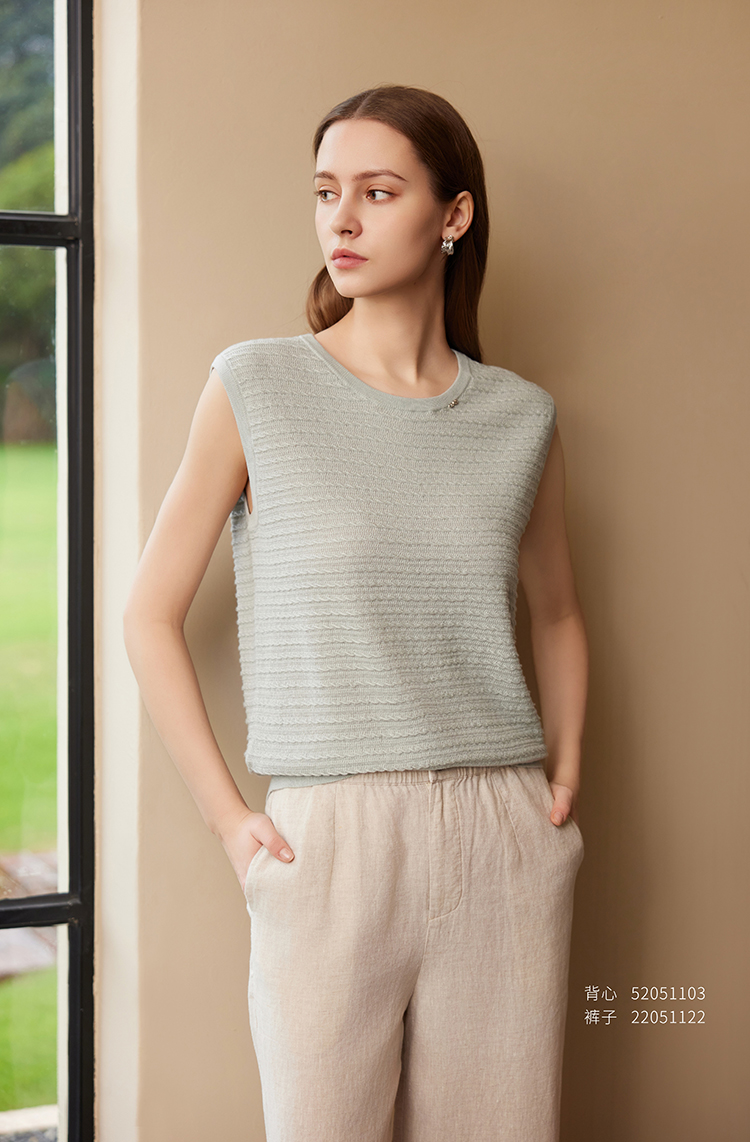【棉丝麻无袖针织背心】25年春夏新品女士圆领薄款针织套衫时尚百搭背心