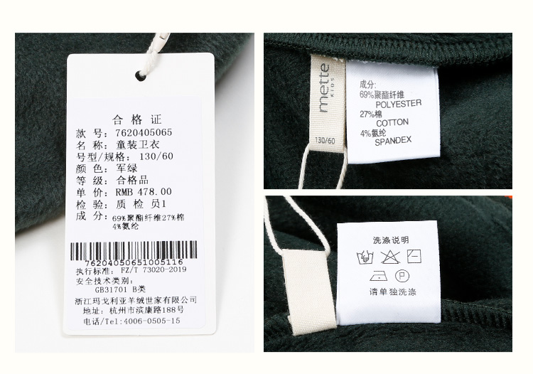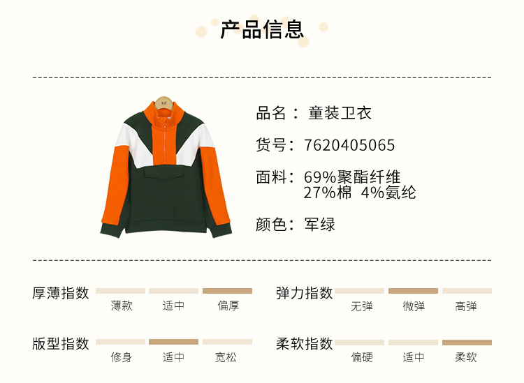 | 材质成分: 聚酯纤维69% 棉27% 聚氨酯弹性纤维(氨纶)4% |