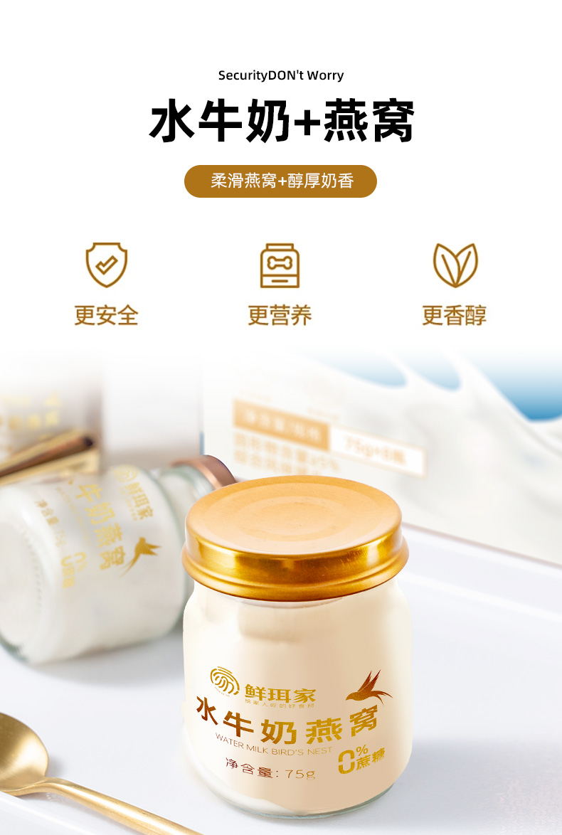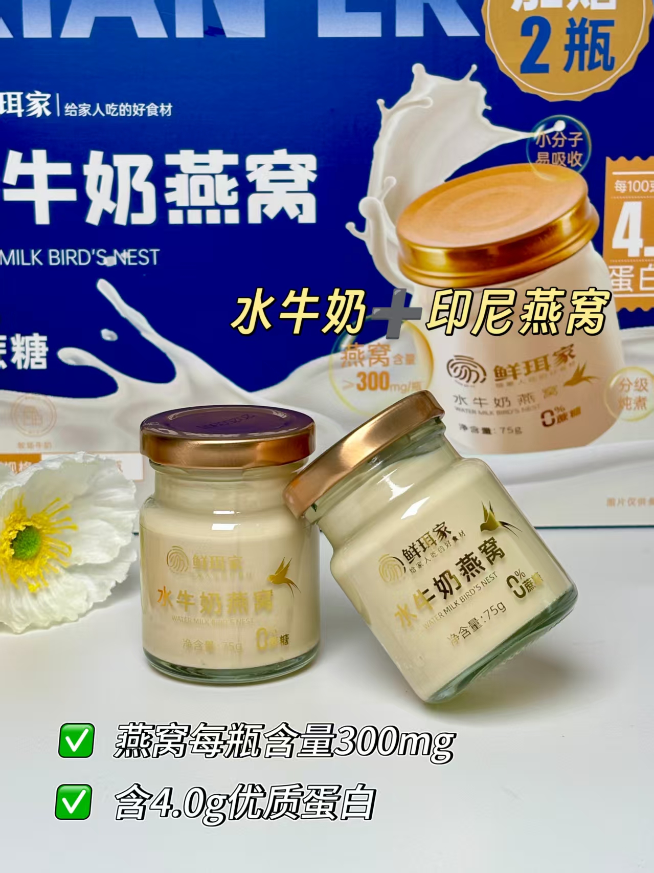 【加赠2瓶!到手10瓶!】鲜珥家 水牛奶燕窝 75g*10瓶礼盒装 原料严选印尼燕窝,0添加蔗糖,营养丰富,口感细腻口味浓厚