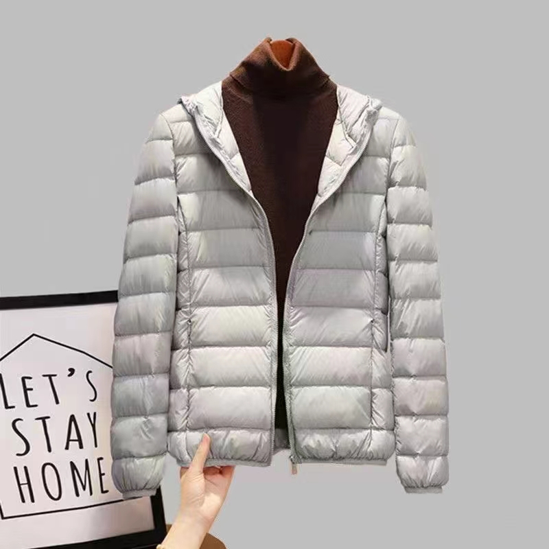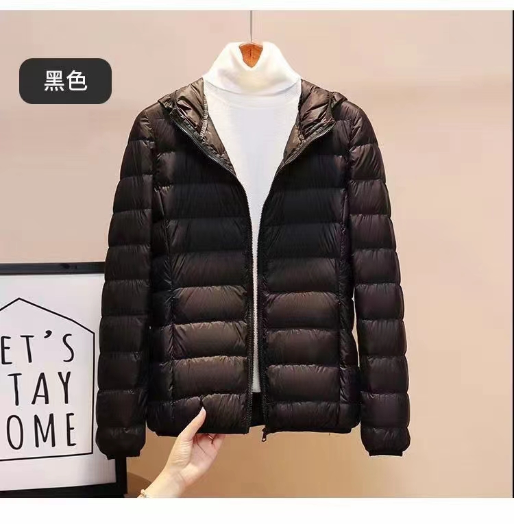 时尚美连帽设计的爆款轻羽绒服保暖性好,都是国标90%的白鸭绒,冬天首选简单大气百搭款,颜色红色黑色粉色灰色都是不挑人的颜色尺码1✘到3✘从100斤穿到150斤左右