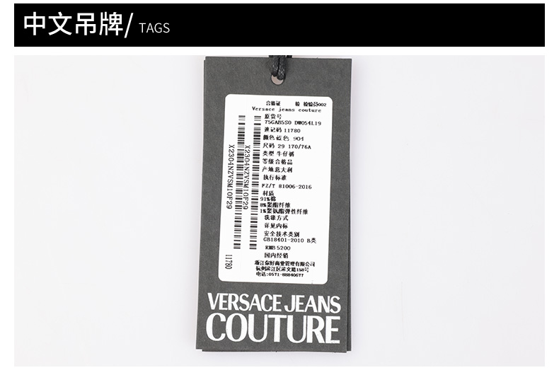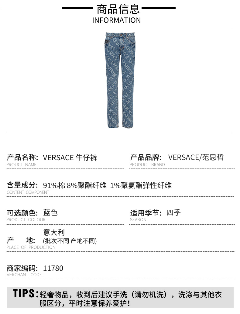 【超惠秒】Versace 范思哲 男士针绣字母logo弹棉牛仔休闲长裤 11780