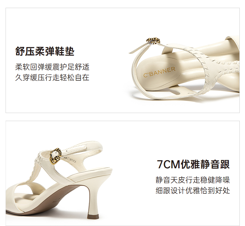 【上新】【静音系列】千百度T字露趾时装凉鞋女2026夏季高跟凉鞋A26354171