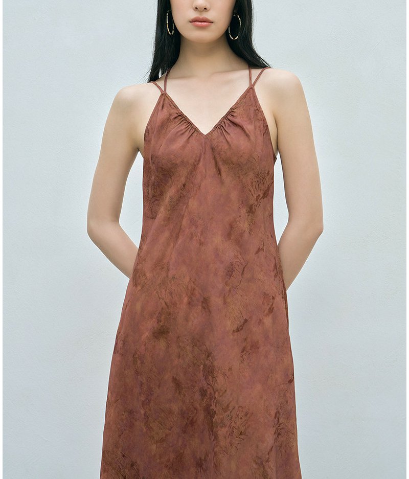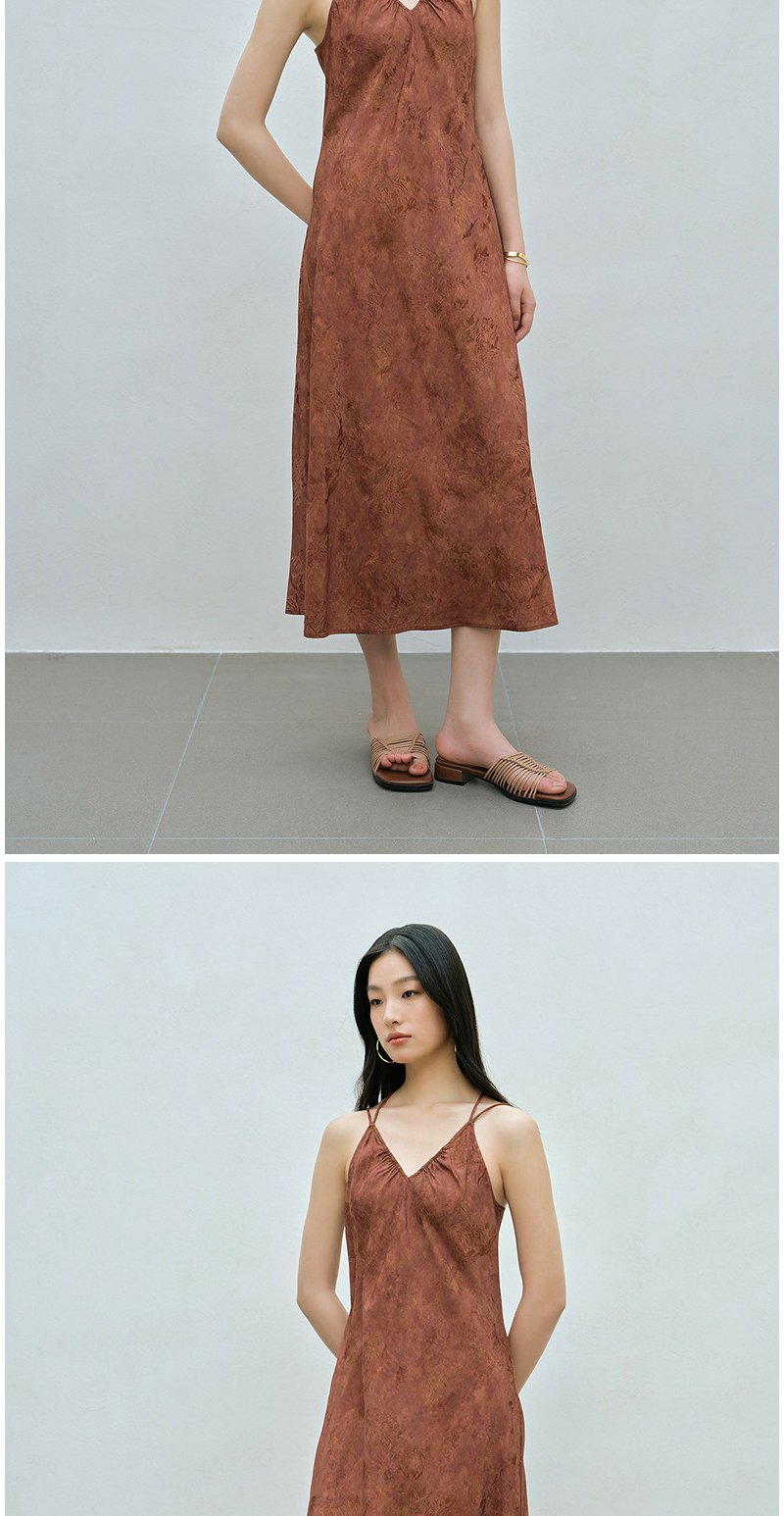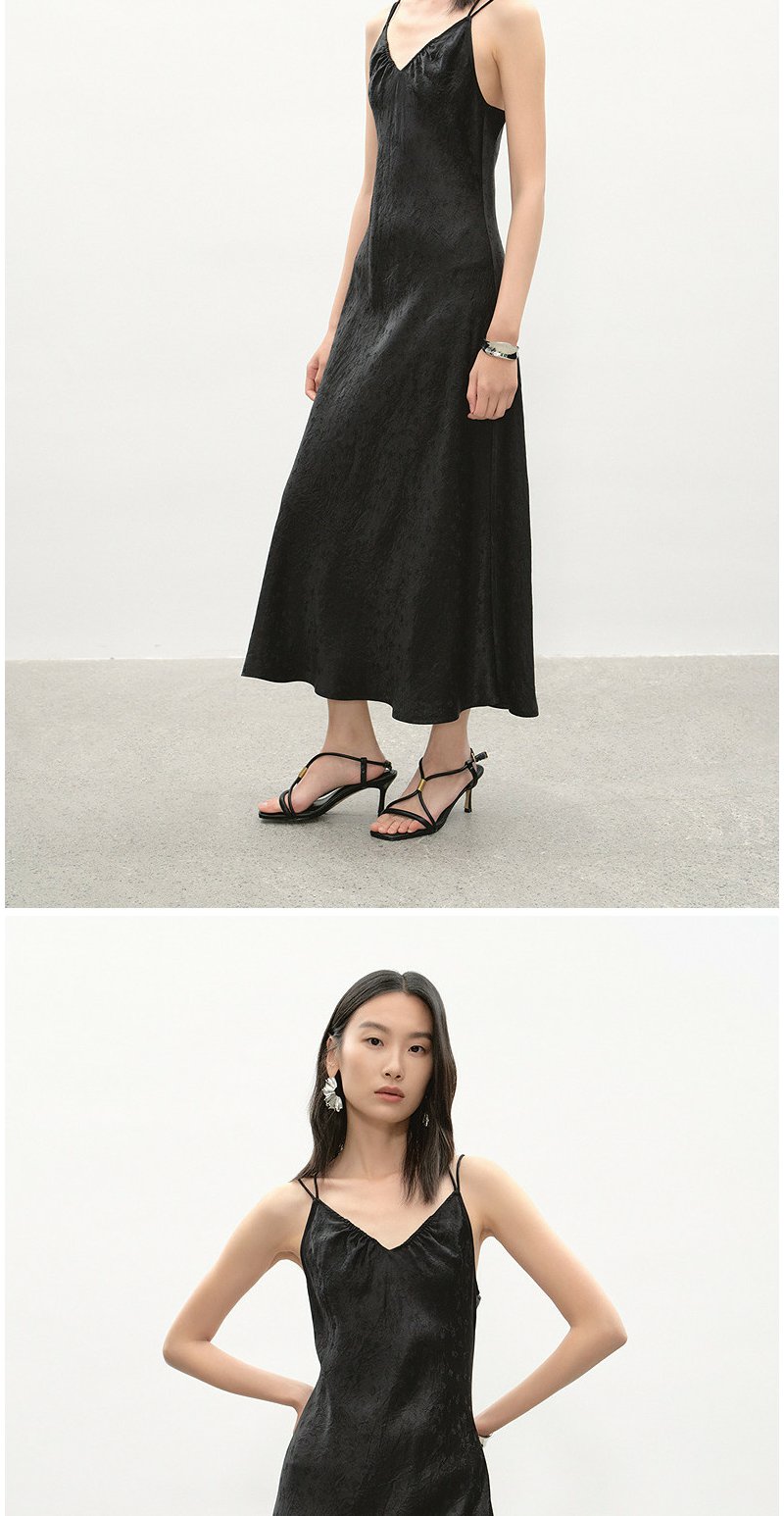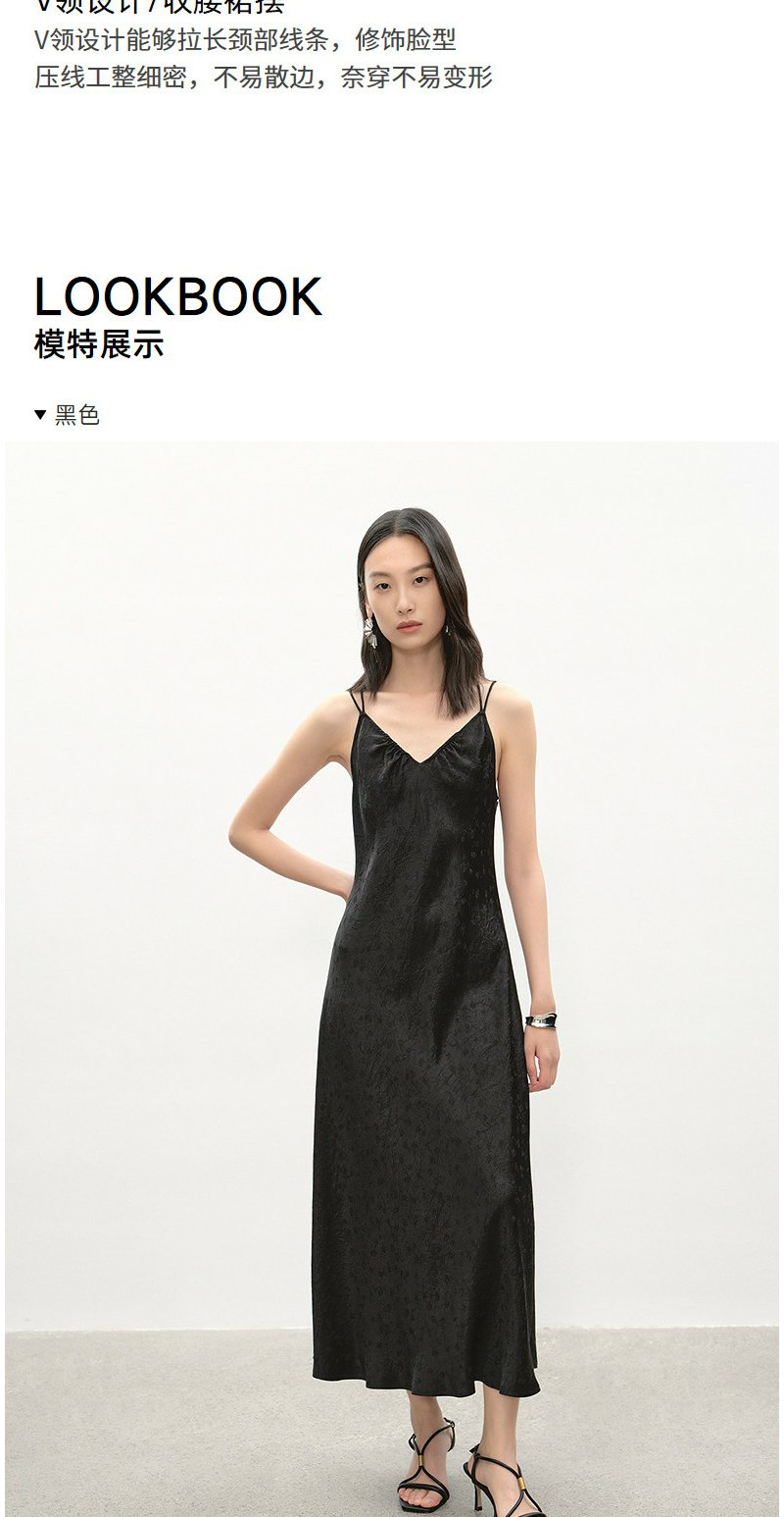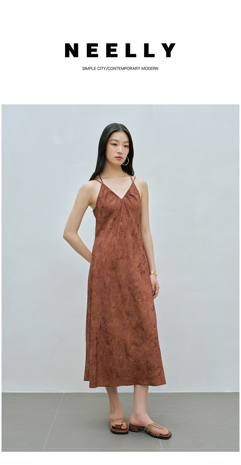 NEELLY纳俪商场同款夏季新款时尚V领设计感吊带长裙女收腰连衣裙N26044Y04430