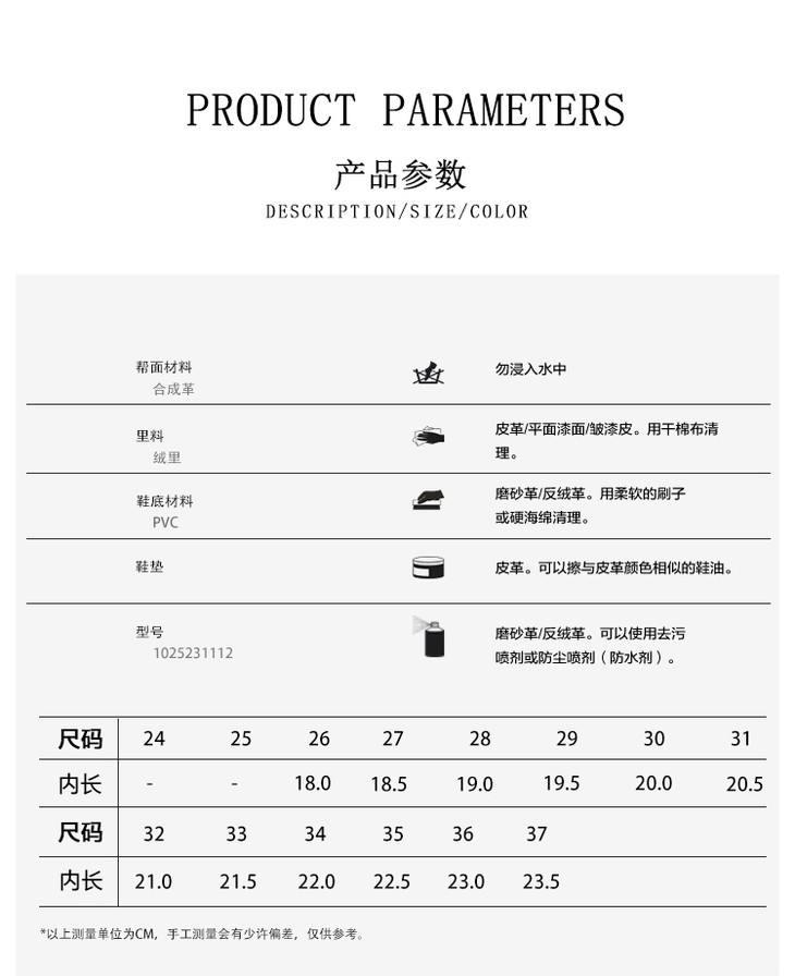 | 售后规则: | 鞋子收到以后在干净的地面进行试穿,确认鞋子是否合适,并且检查好鞋子的质量,检查好以后再进行外穿,7天内不影响二次销售可进行调换!破损问题签收48小时之内带快递面单与产品同框拍照报售后,超时不予处理望谅解 | |