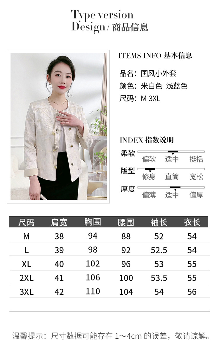 短款印花新中式国风,时尚小香风外套洋气上衣QYM-XQD-11A2433-L