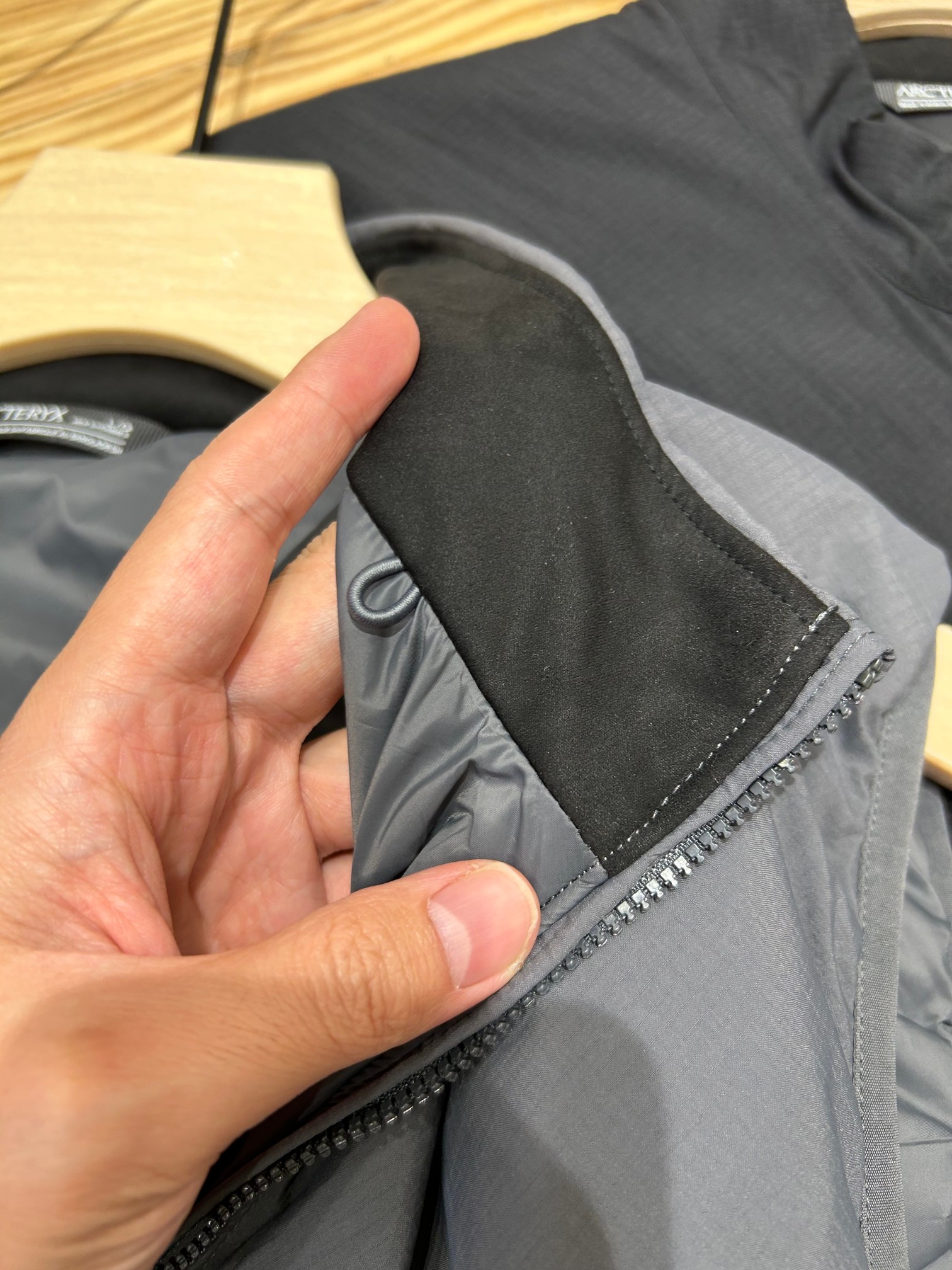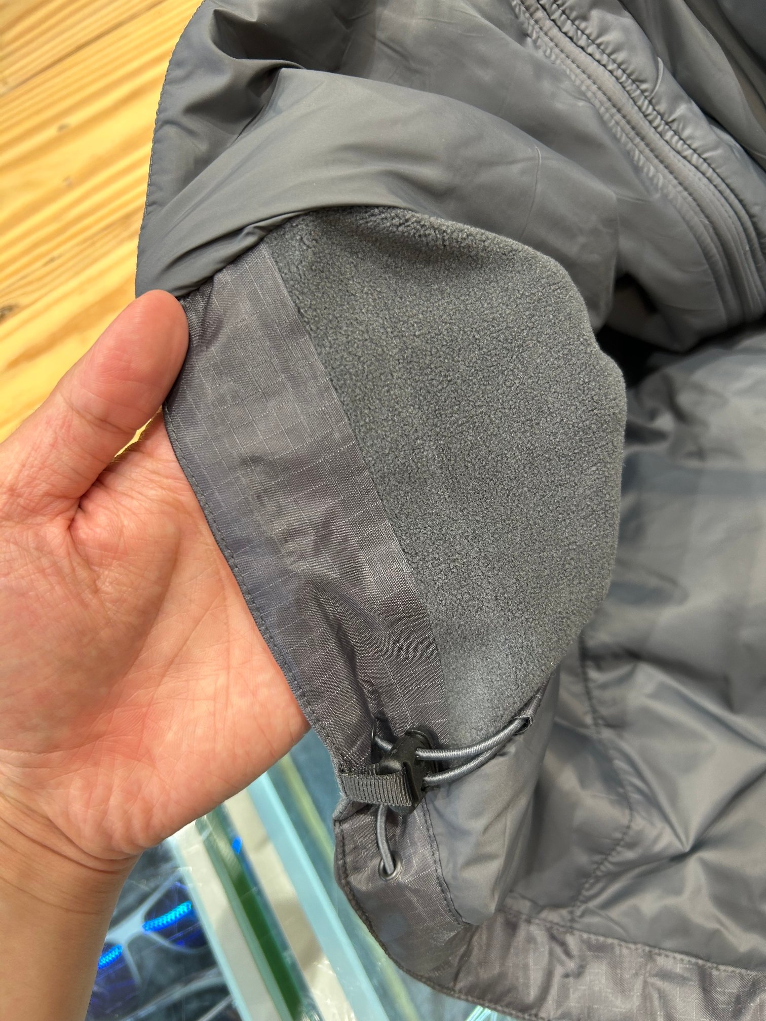 袖口做了弹力收紧...