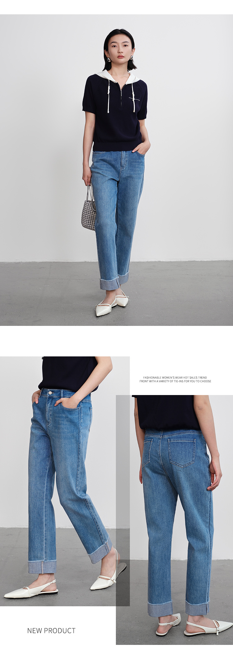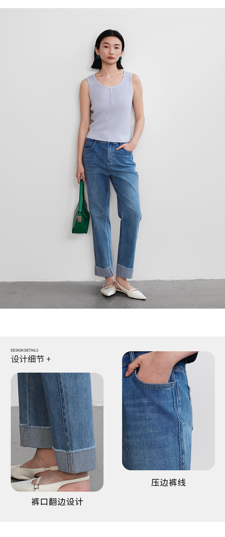 【商场同款】CNT5398 “ 清新卷边裤 ” 夏日清新蓝调 直筒牛仔裤