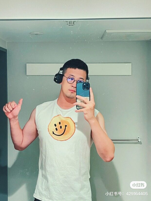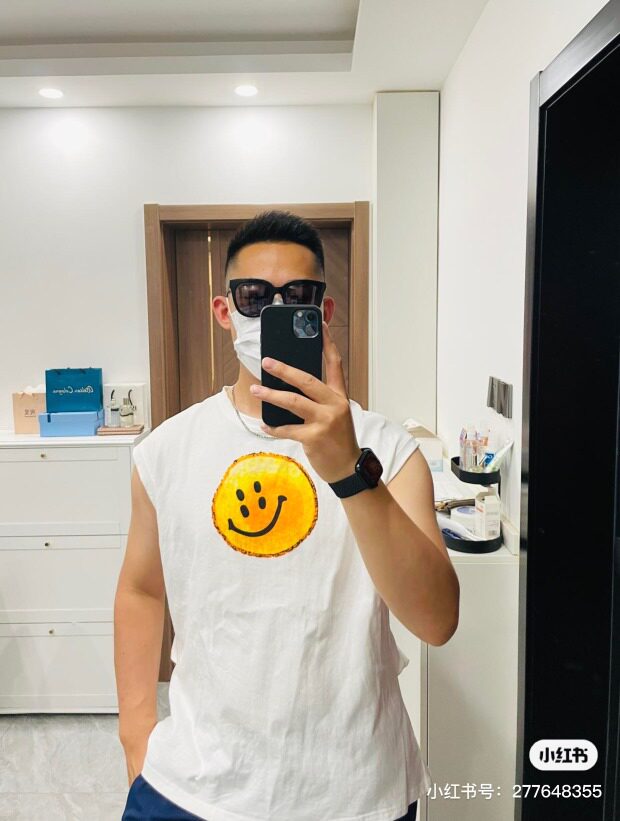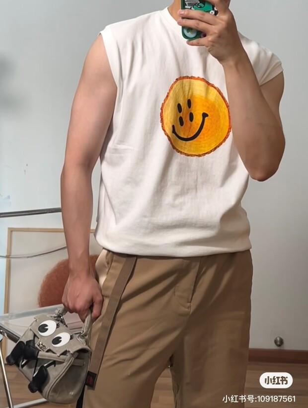 我家男同志 身高170cm 体重160g 肩宽46cm 净胸围102cm 常穿XL码的Tee