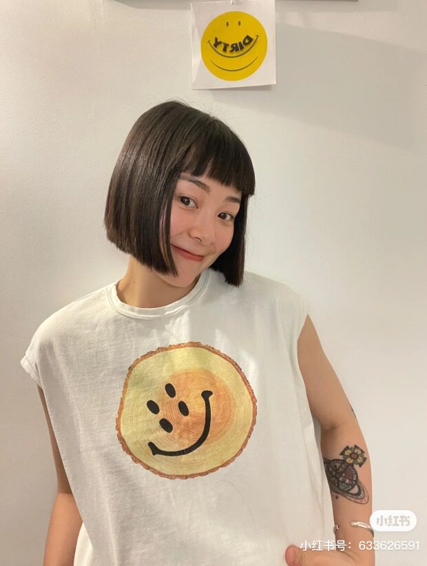 底边 前/平口 后/小圆弧 上身的侧面 就是往后坠的那种感觉 比例非常好
