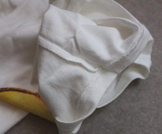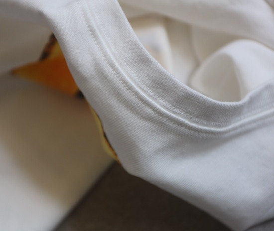 领口和袖口 都是螺纹的 很典型的日式制衣风格 外缝式拼接