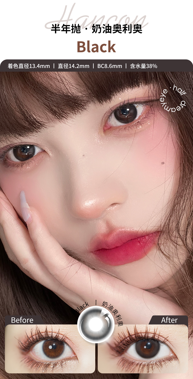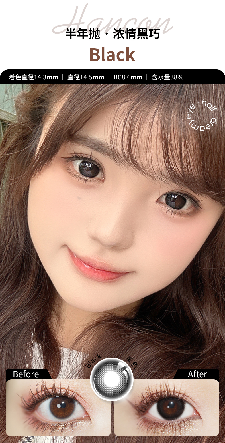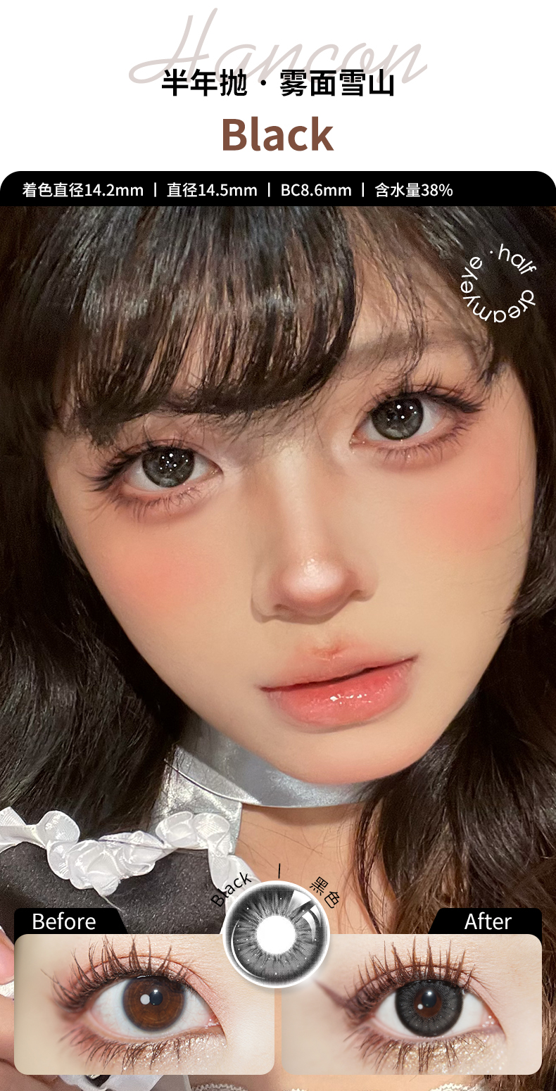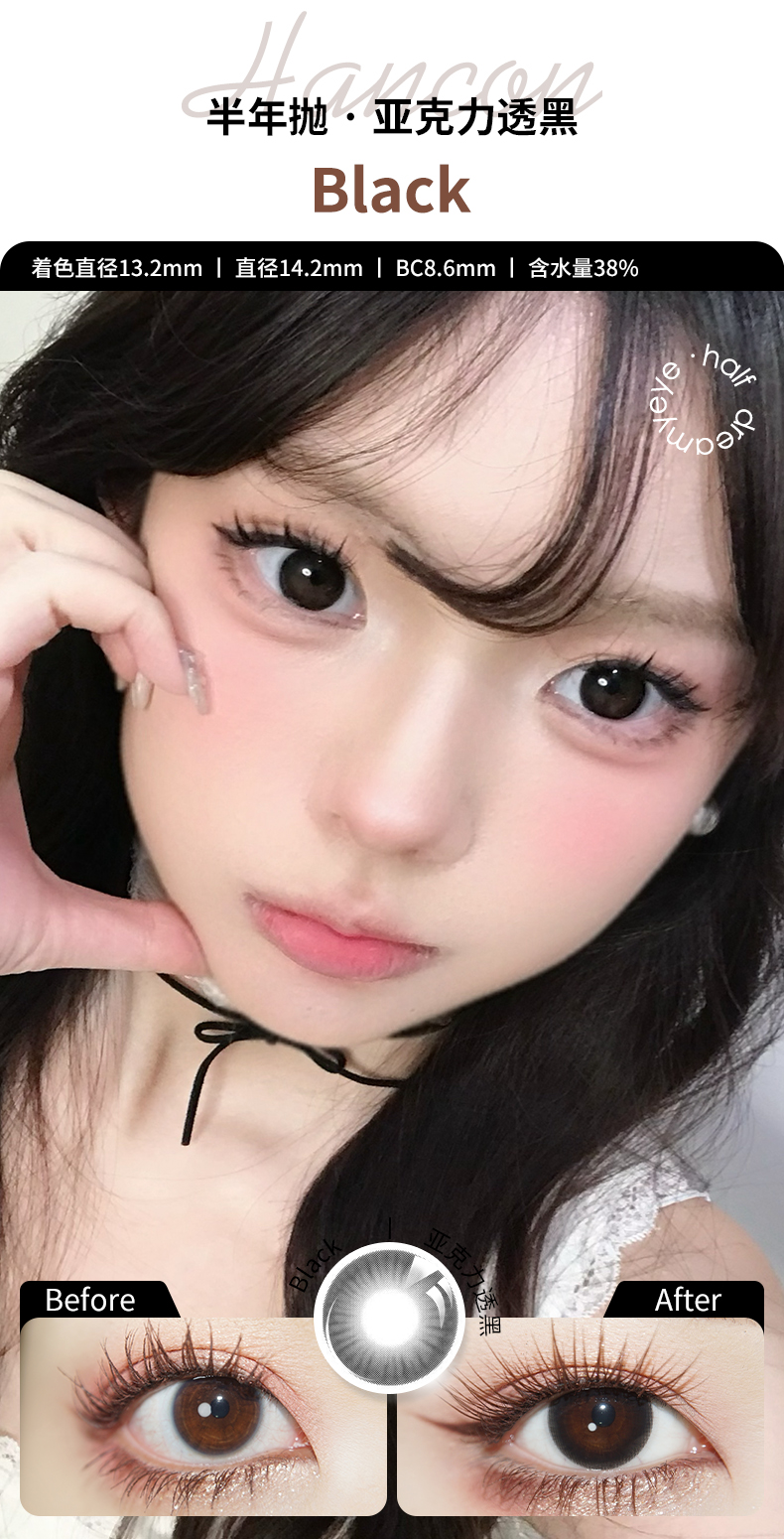 「 3副均¥43」HANCON 半年抛 | 浓情黑巧/亚克力透黑/巨目黑茶/蕾丝雪花 自然款合集