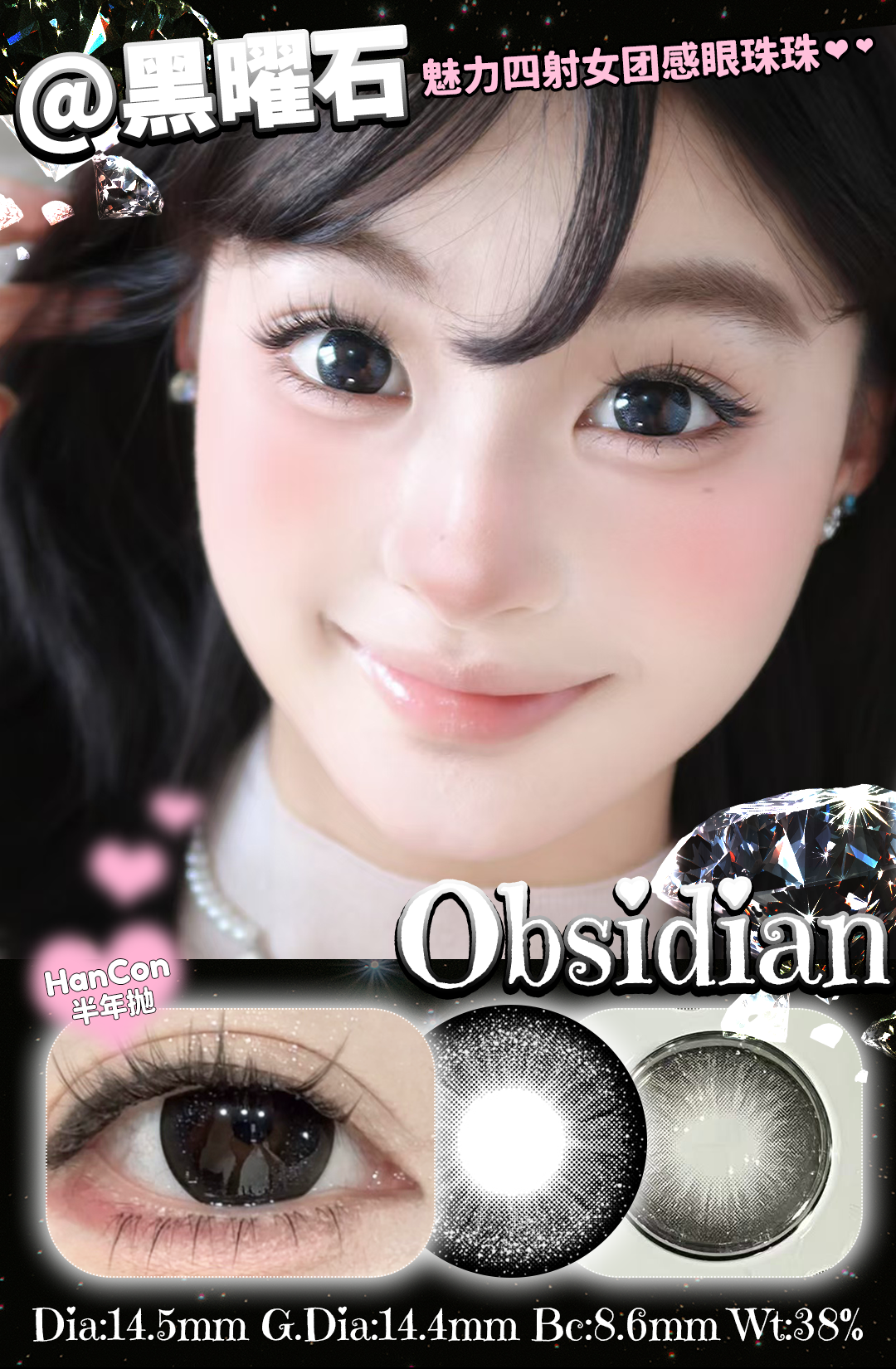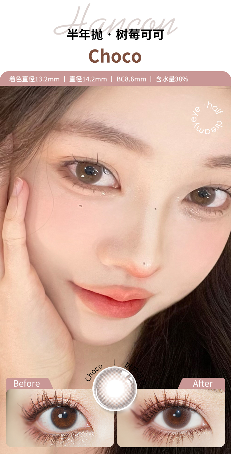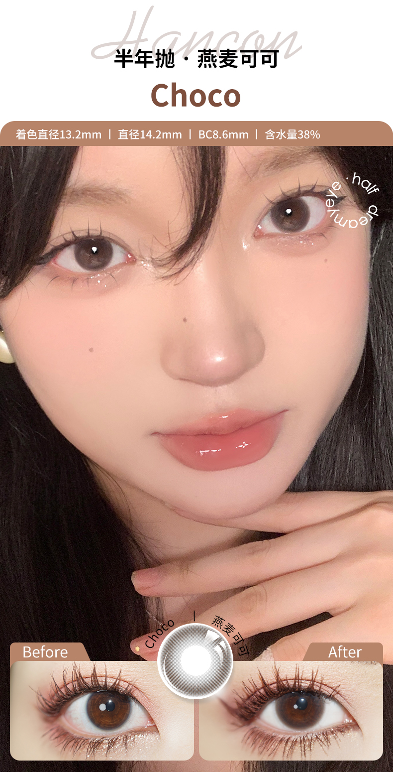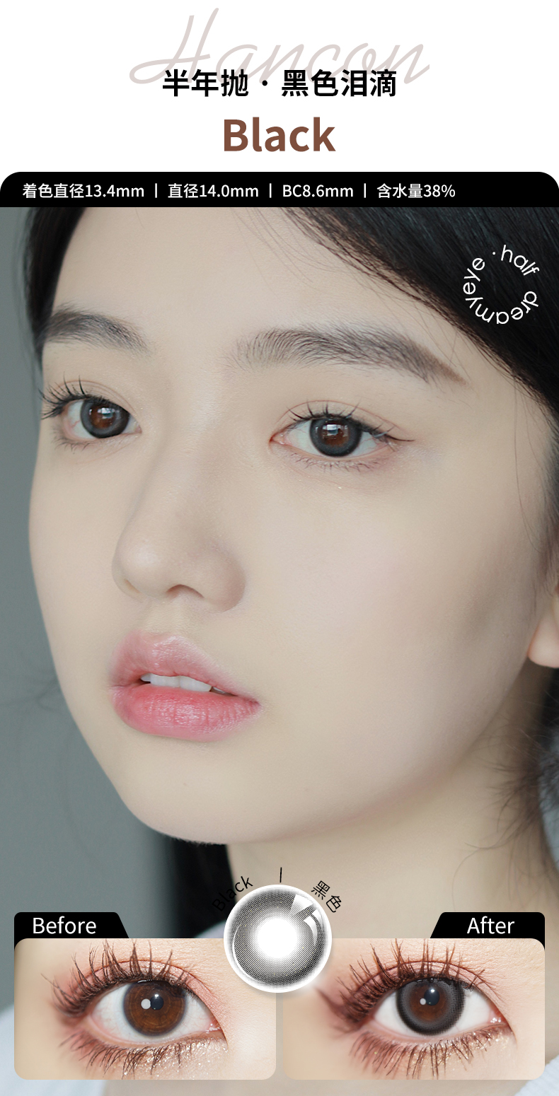 「 3副均¥43」HANCON 半年抛 | 浓情黑巧/亚克力透黑/巨目黑茶/蕾丝雪花 自然款合集