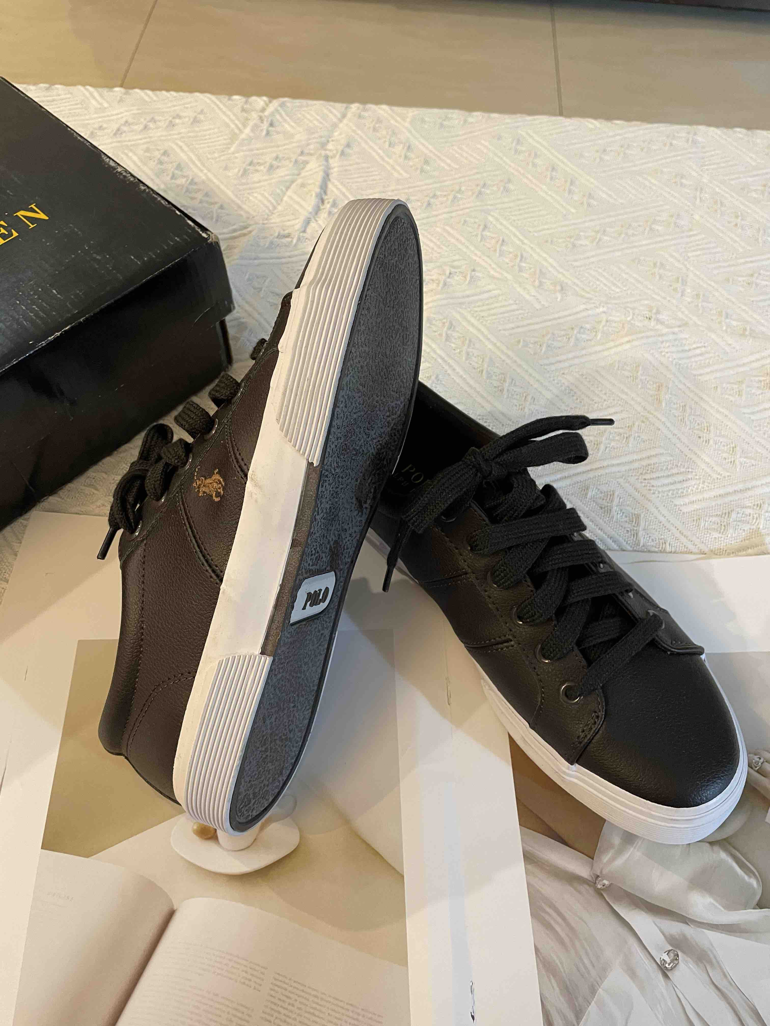 说明:Polo Ralph Lauren真牛皮系带板鞋,深咖色。老款专柜撤回,正品保真。有原盒。盒子旧。