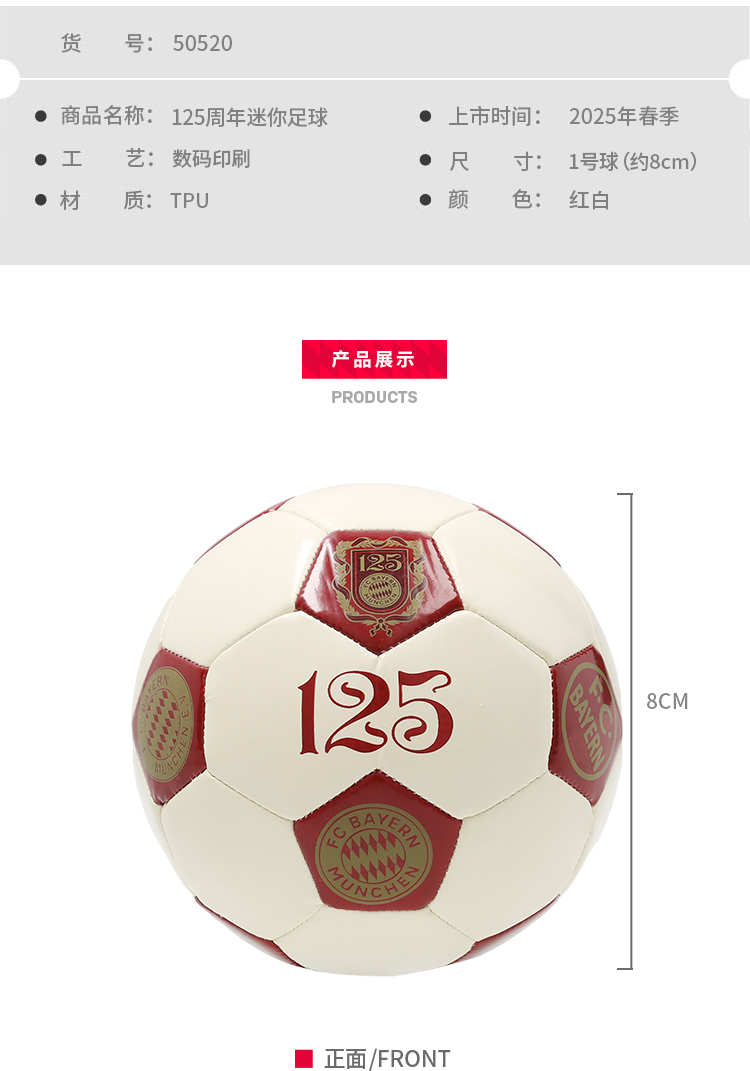 【官网同款】拜仁慕尼黑足球俱乐部丨125周年迷你纪念1号足球球迷礼物