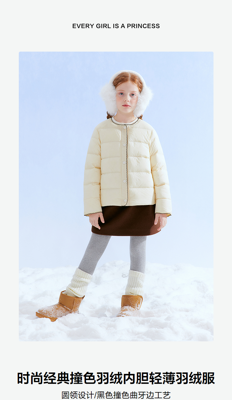 笛莎Deesha 童装女童羽绒服2025冬新款女童时尚经典撞色轻薄羽绒服